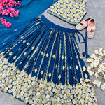 🧿FABRICE :- Fox Georgette With Sequence 5mm Embroidery Work With Extra Sleeves With Back Side Hook Patti