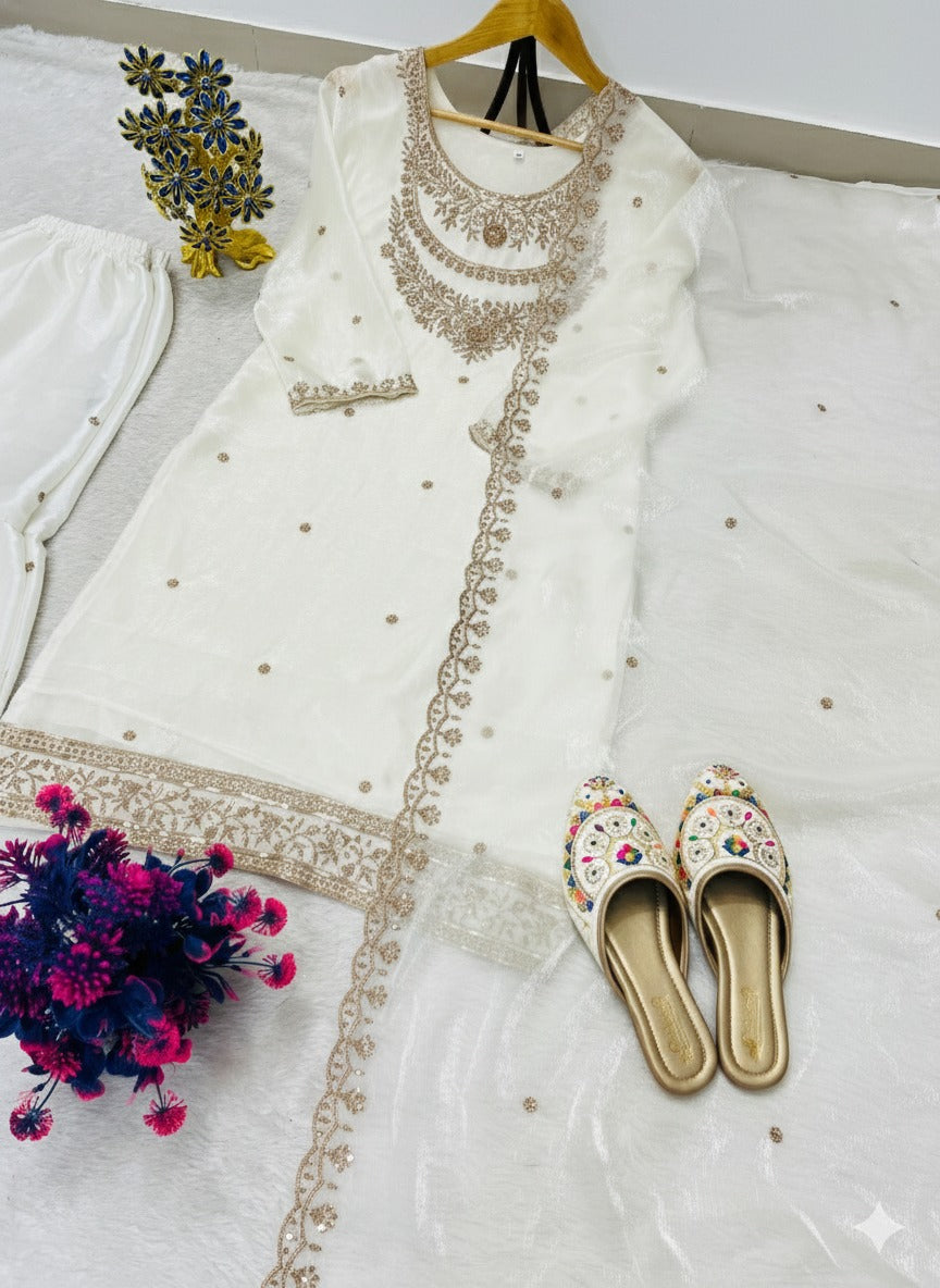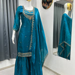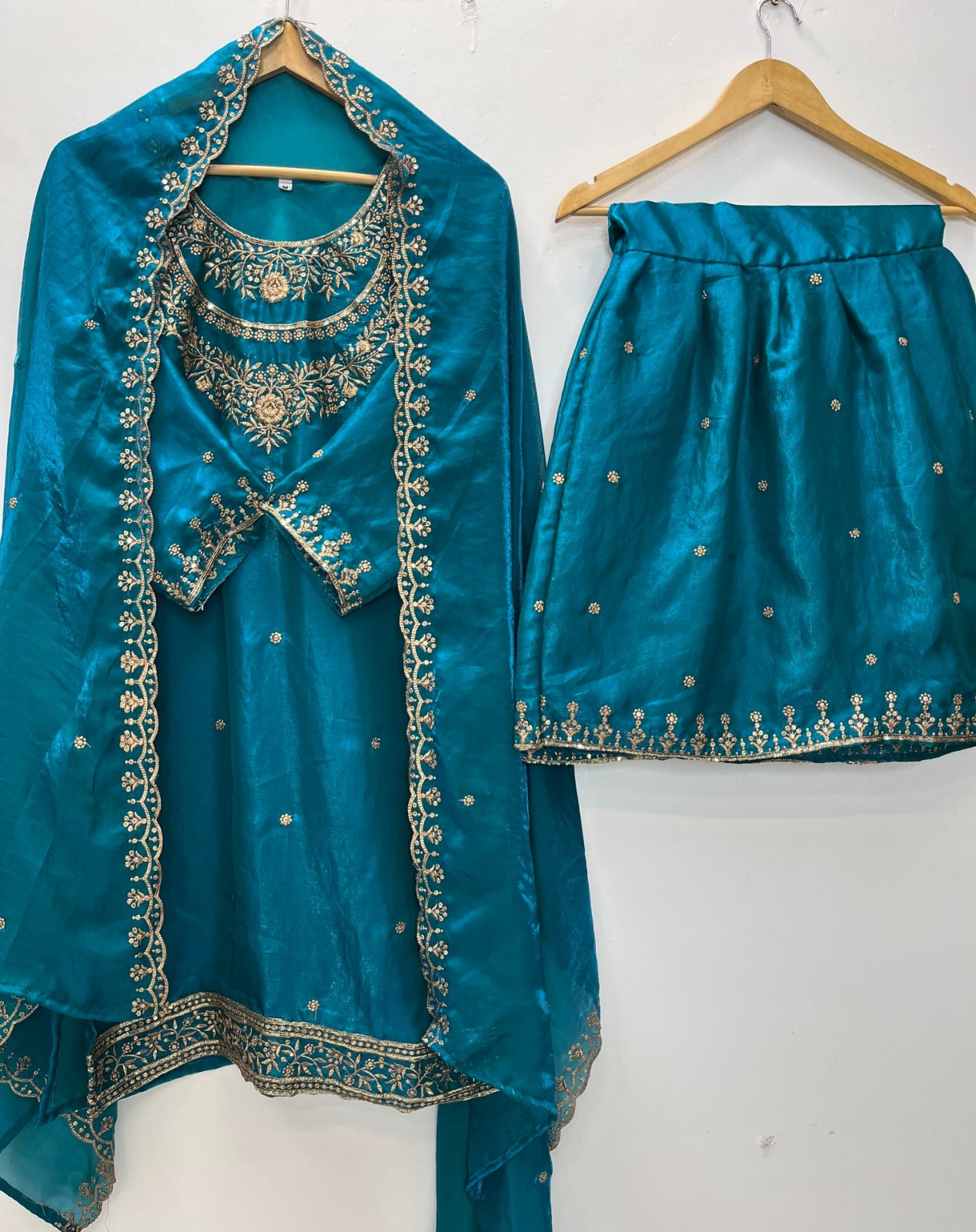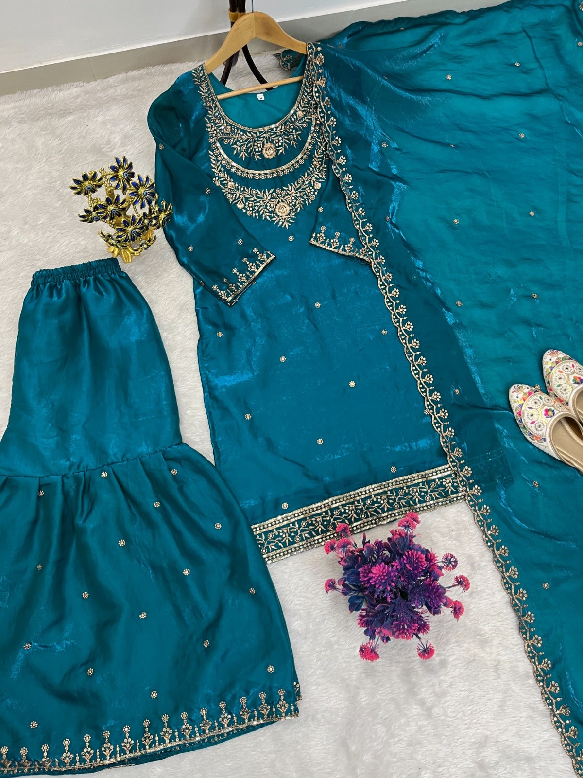 FESTIVAL SEASON LUNCH NEW DESIGNER HEAVY EMBROIDERY WORK ON FENDY FABRIC TOP SHARARA AND DUPATTA S