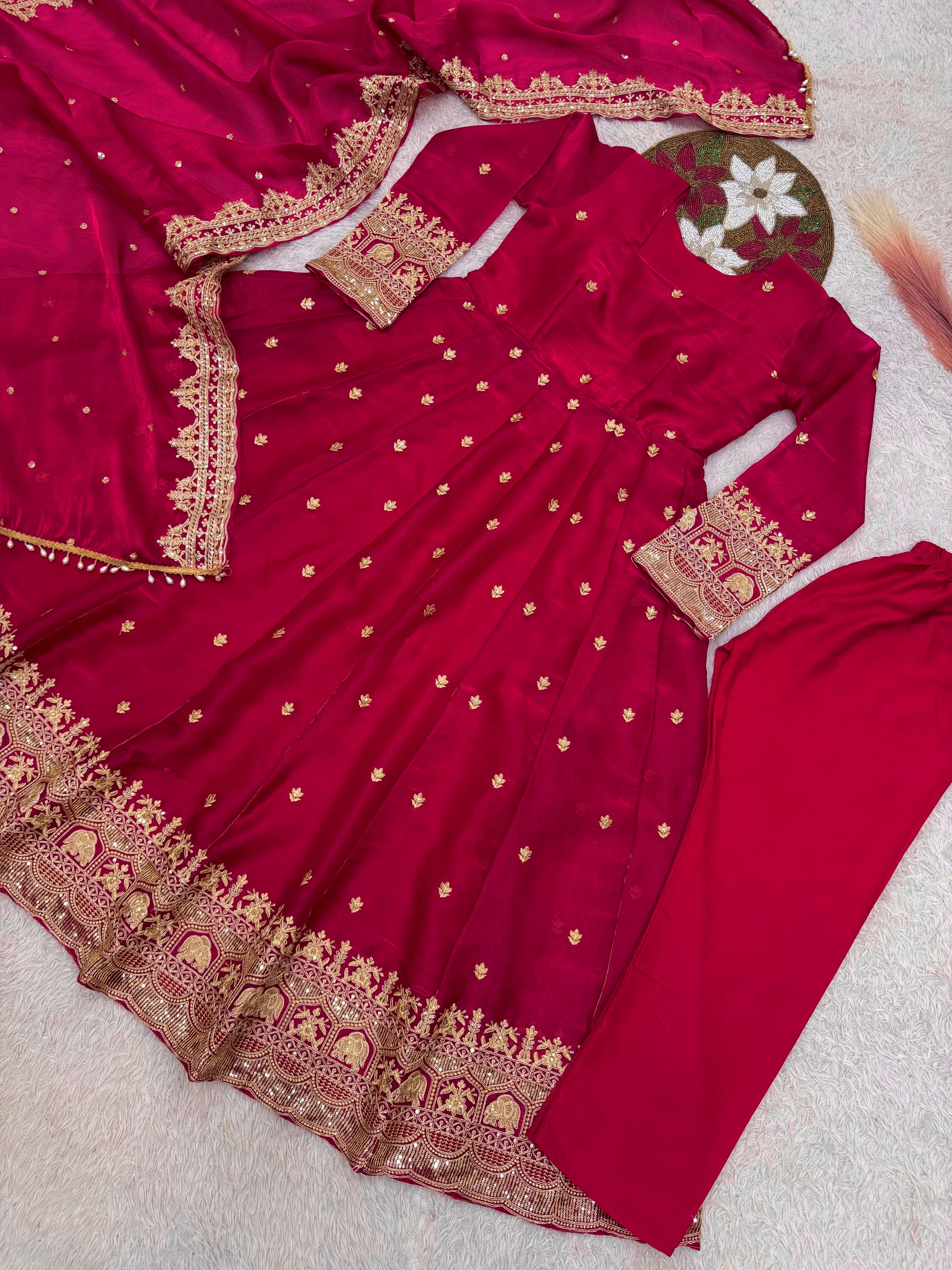 "Elegant Embroidery Work With Designer Anarkali Three Piece Set"*