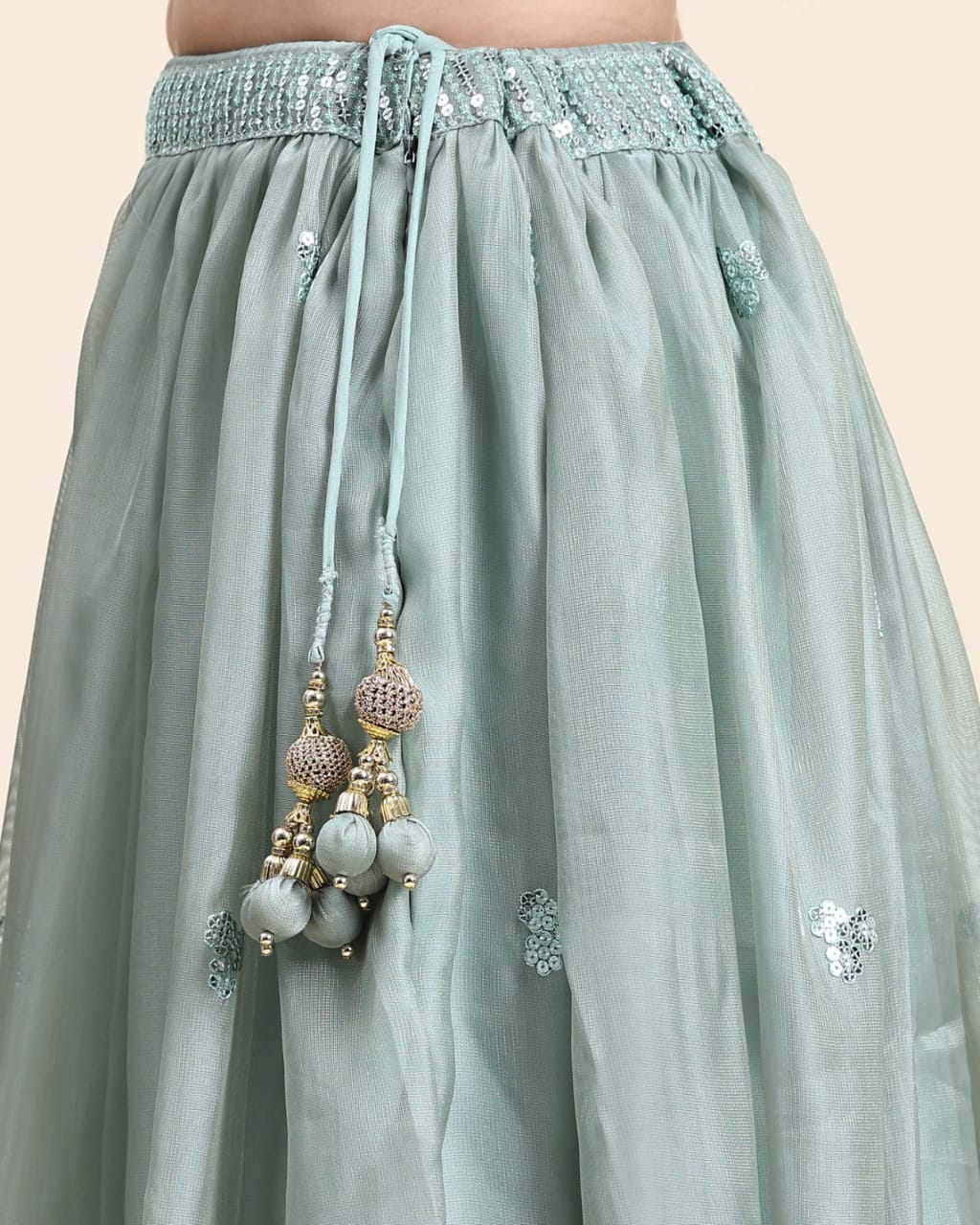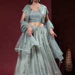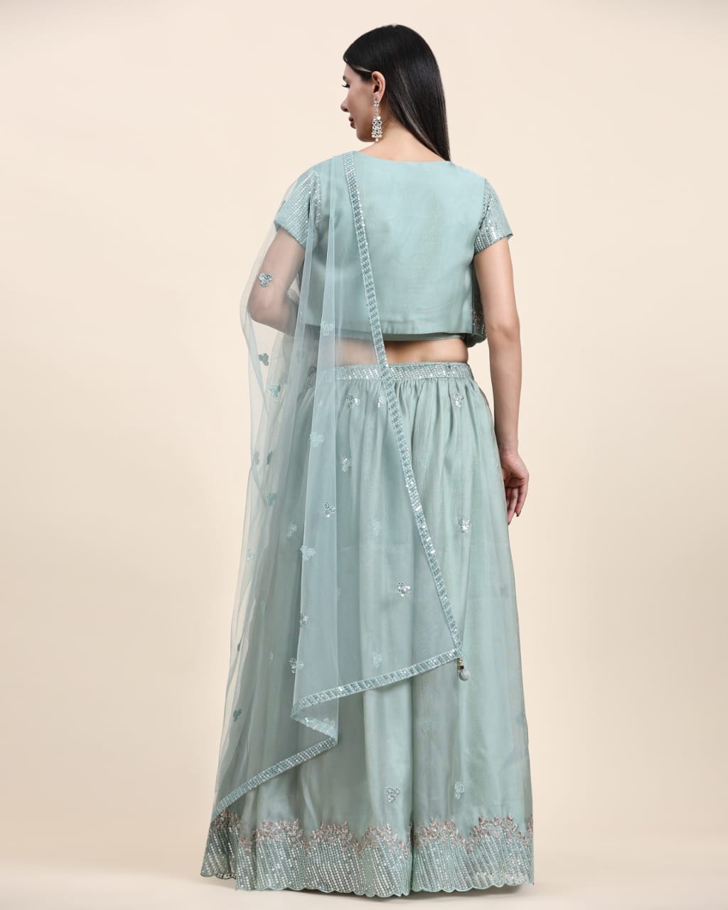 LEHENGA SIMMOR NET FABRIC WITH SEQUIN EMBROIDERY WORK WITH LATHAKHANAS