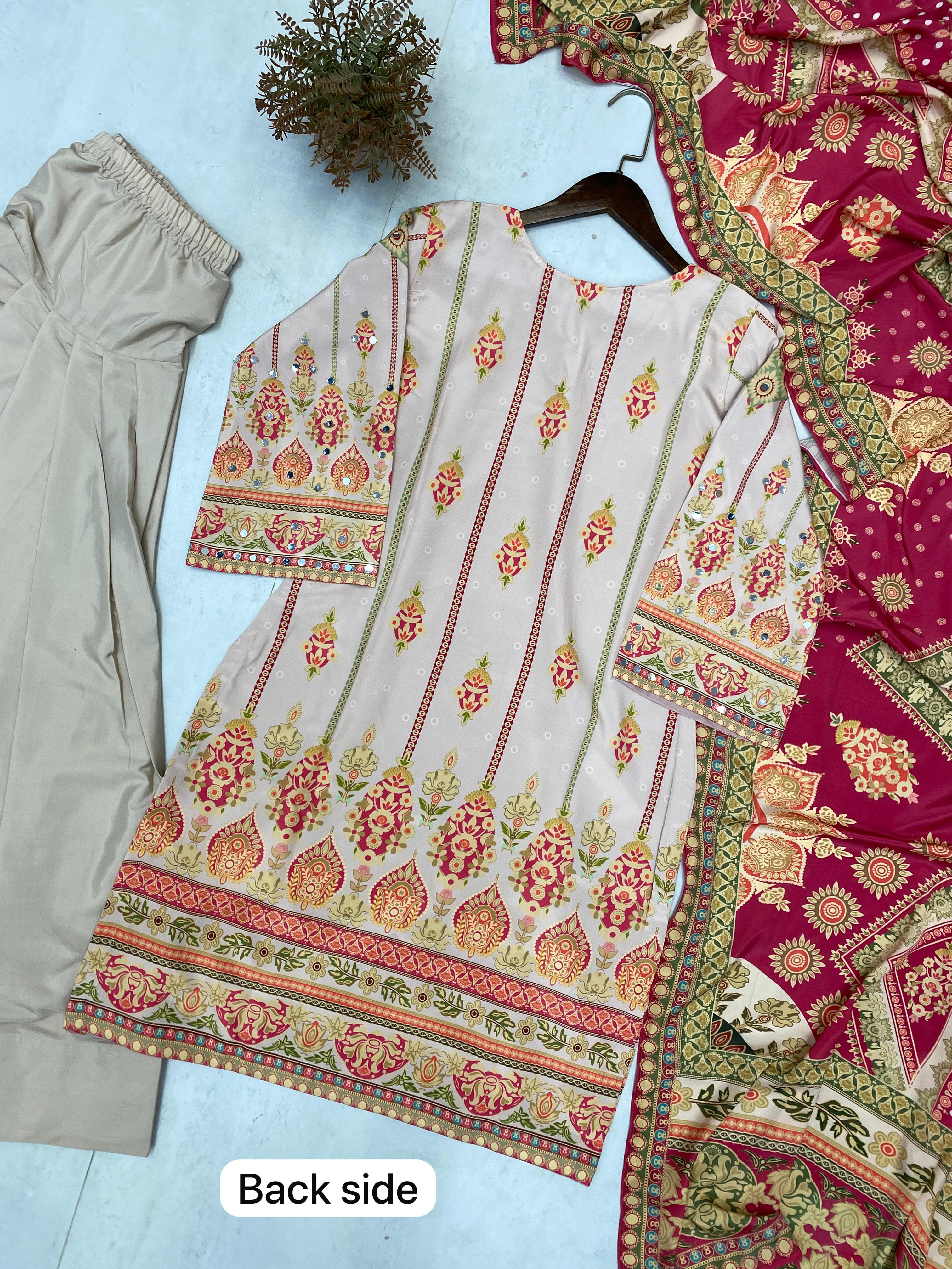 #DUPATTA :PRINTED FRENCH CREAPE WITH PRINTED WORK (2.2 mtr)