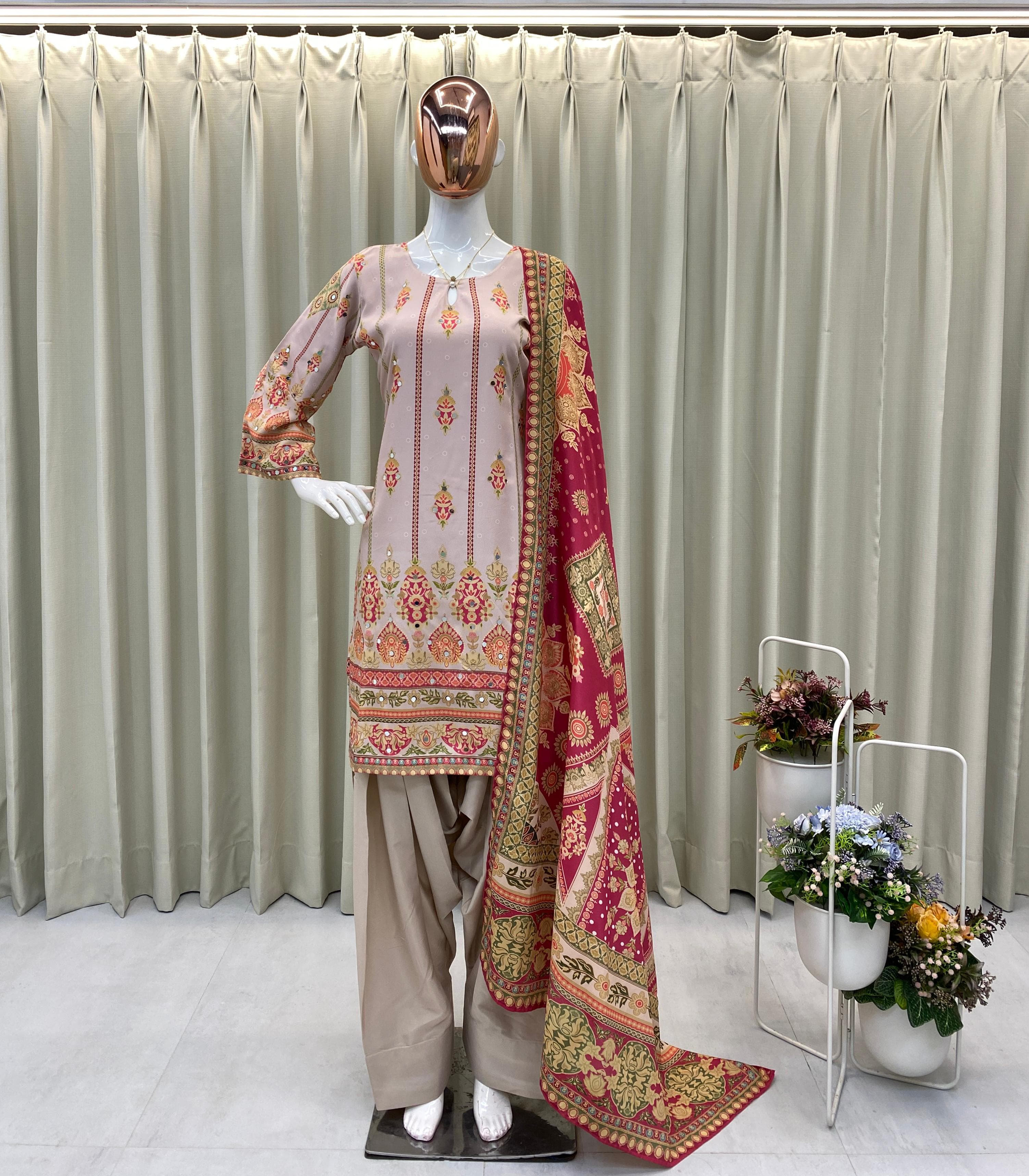 #TOP FABRICS: FRENCH CREAPE WITH PRINTED WORK AND REAL MIRROR WORK