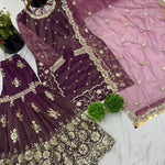 Plazzo  Fabrics :Twill Net With Heavy Embroidery Sequence Work With Elastic