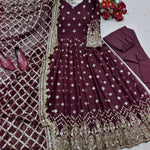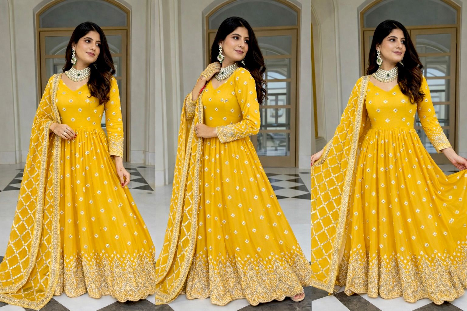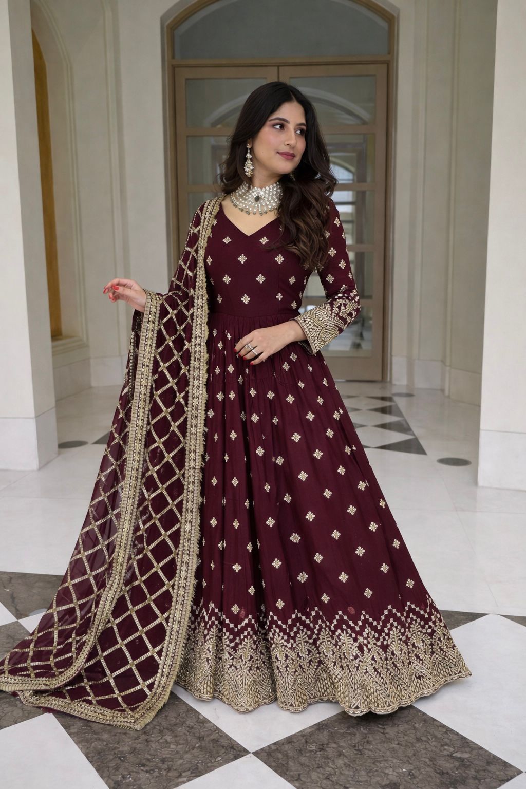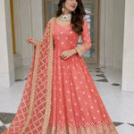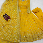 *👉👗Gwon Fabric* : Heavy Fox Georgette With Hevvy 5mm Siqwans Emrodery Work With Sleeve With (*Atteched Paid*)