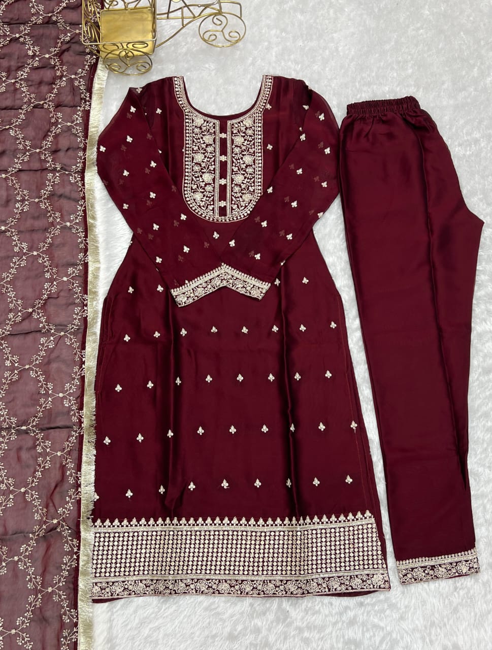 KURTA FABRIC:👗 PURE BLOOMING RANGOLI SILK FABRIC WITH BEAUTIFUL EMBROIDERY SEQUENCE AND THREAD WORK ON YOKE,SLEEVES,BOTTOM LACE WORK,ROUND NECKLINE