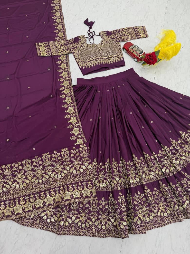 Festive Wine Embroidered Lehenga Choli