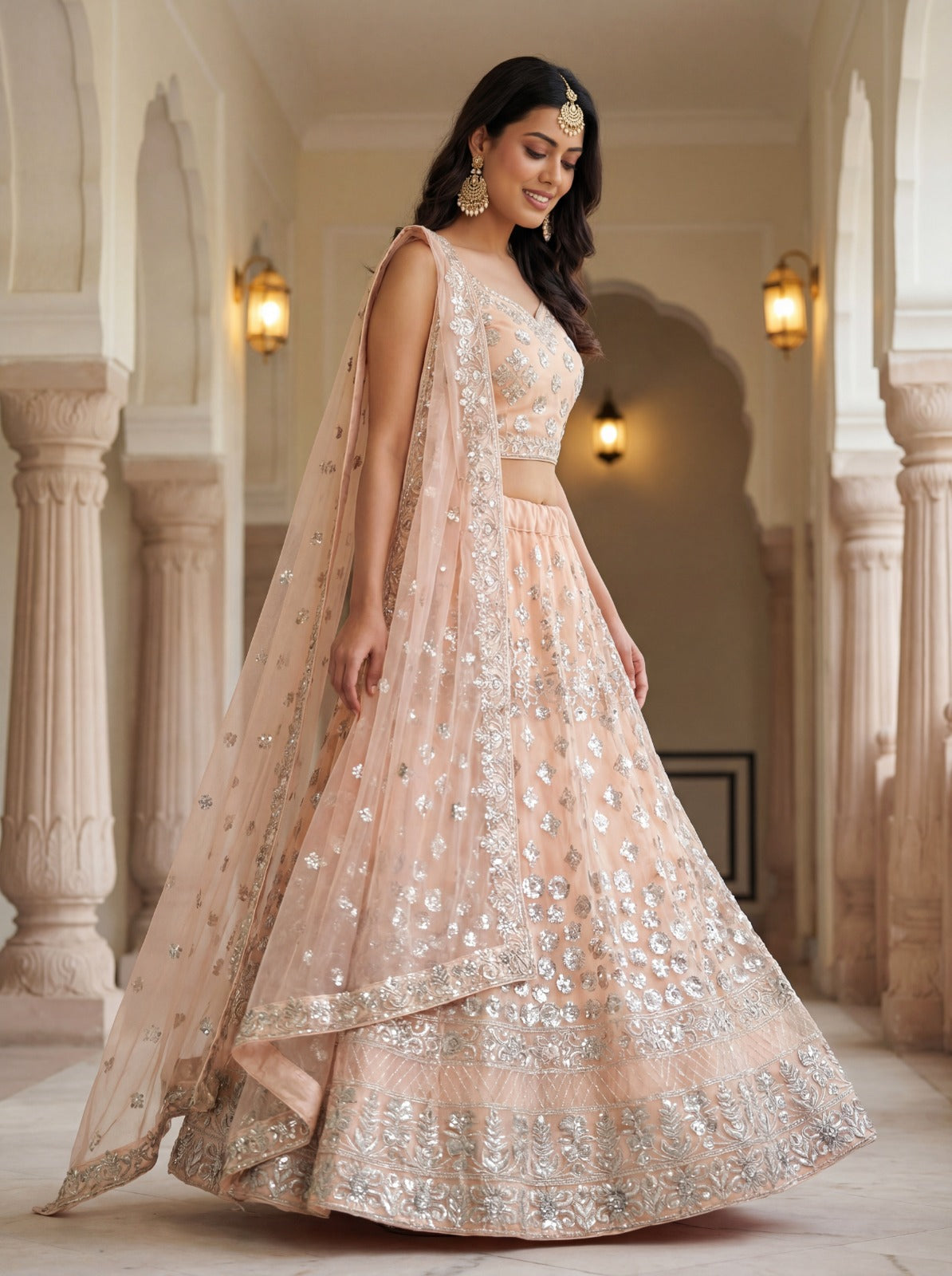 *Premium Lehenga Choli set featuring Bridal Net Lehenga & Blouse with Soft Net Dupatta.*