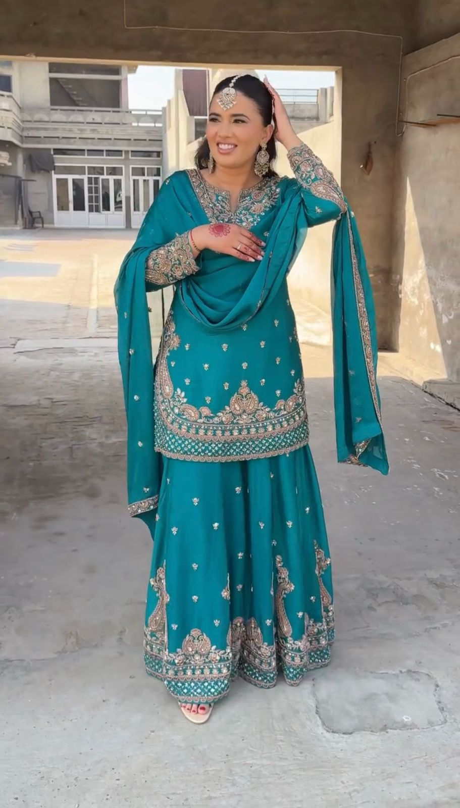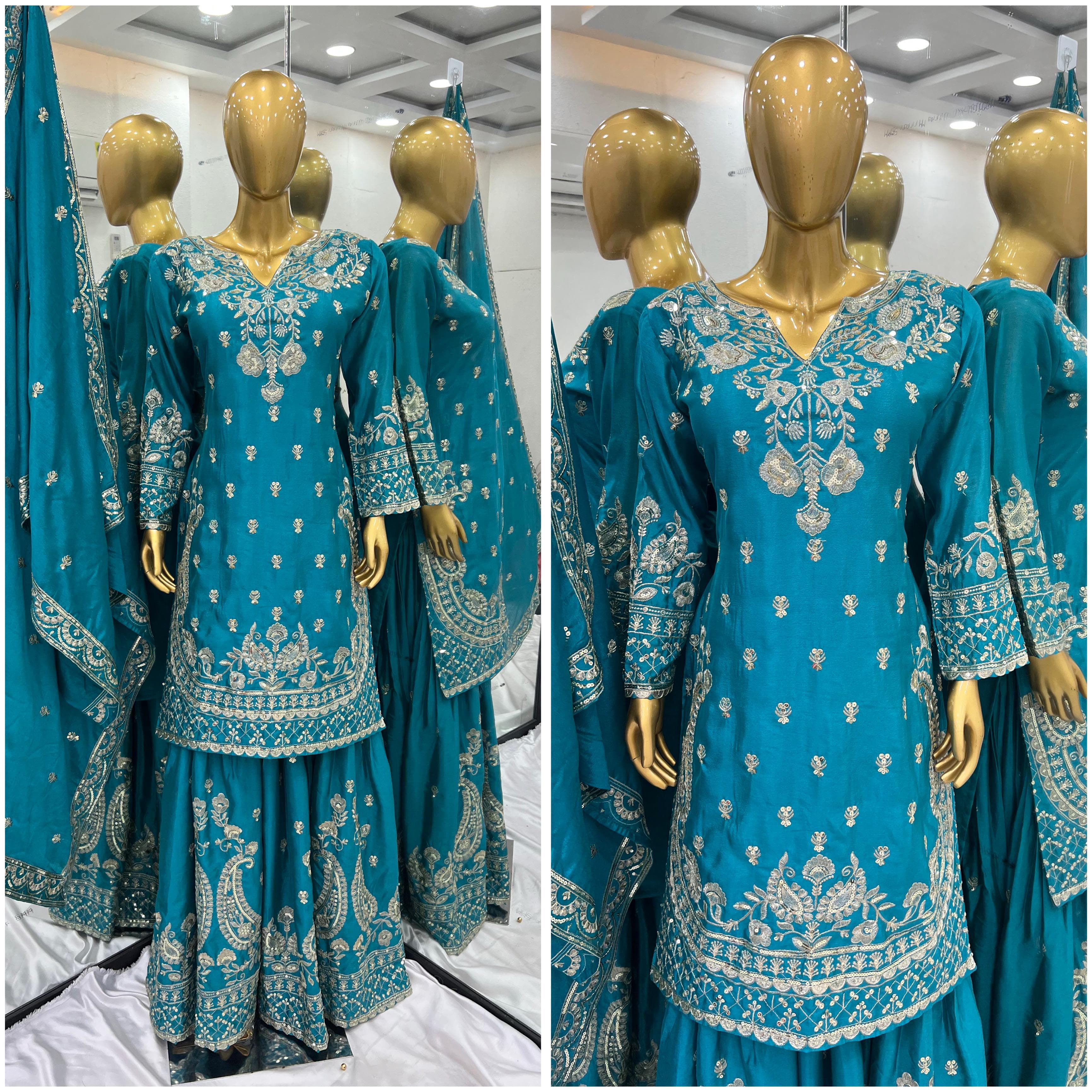 Gharara Fabrics :Heavy Faux Georgette With  5mm Embroidery Sequence Work