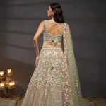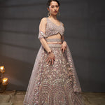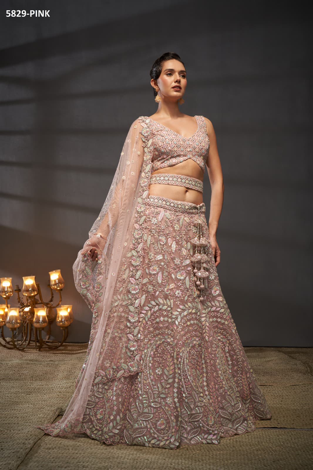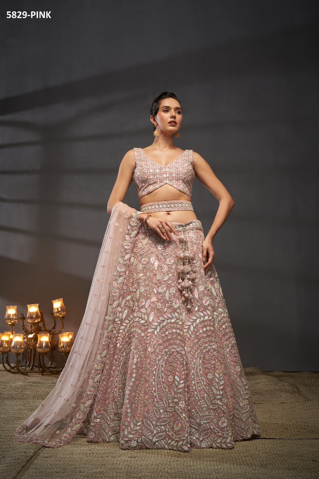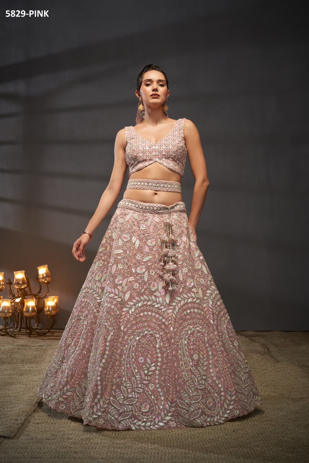 • Dupatta:- Pink Net Dupatta has a multi colour sequinse work Ethnic motif with Embroidery lace Border.