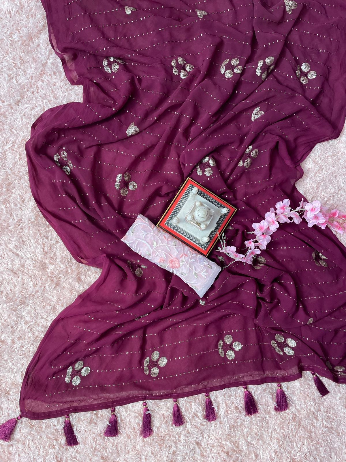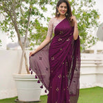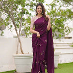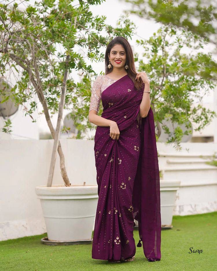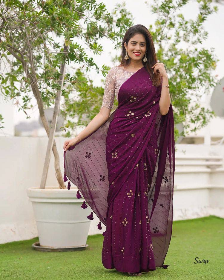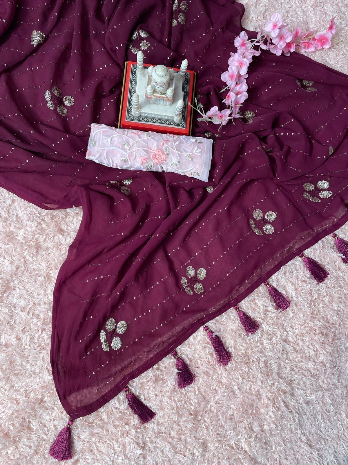 WE ARE LAUNCHING NEW SUPERHIT WINE COLOR SEQUINS EMBROIDERED WORK SAREE WITH FULL WORK BLOUSE🥻