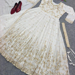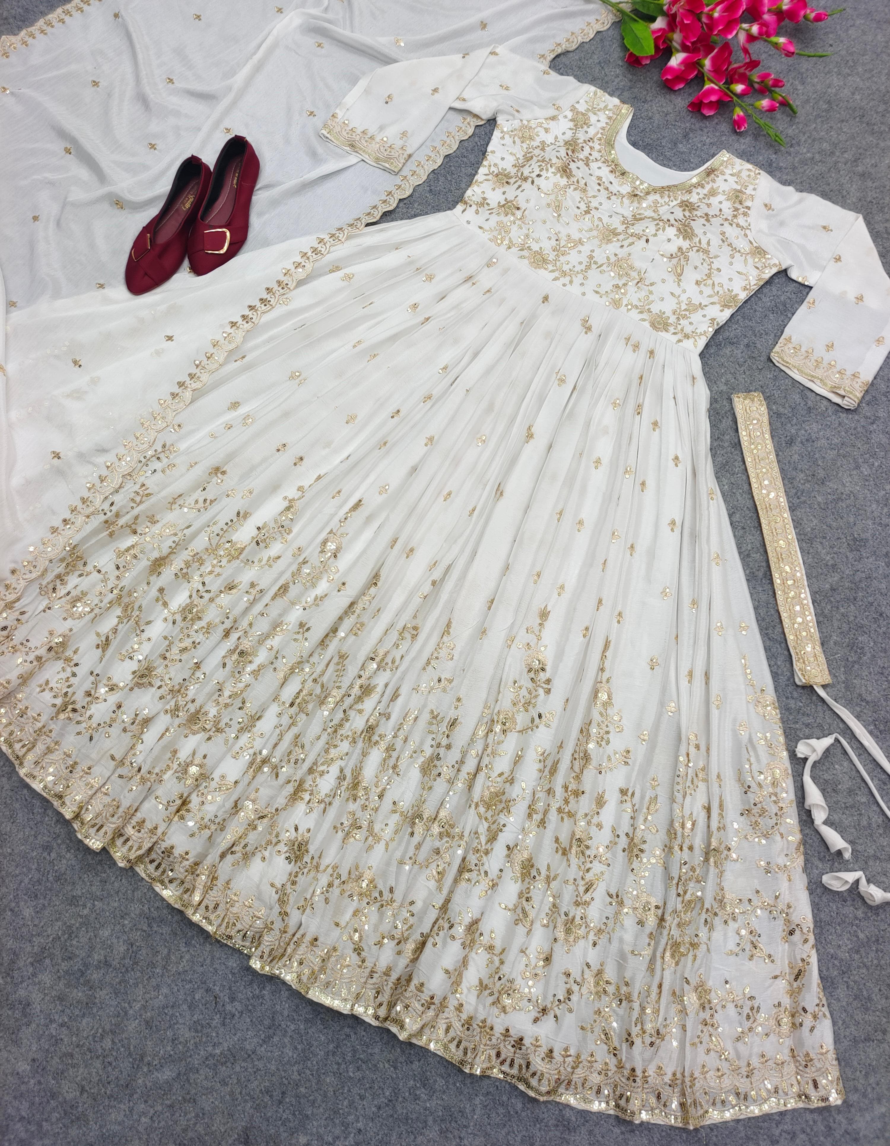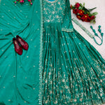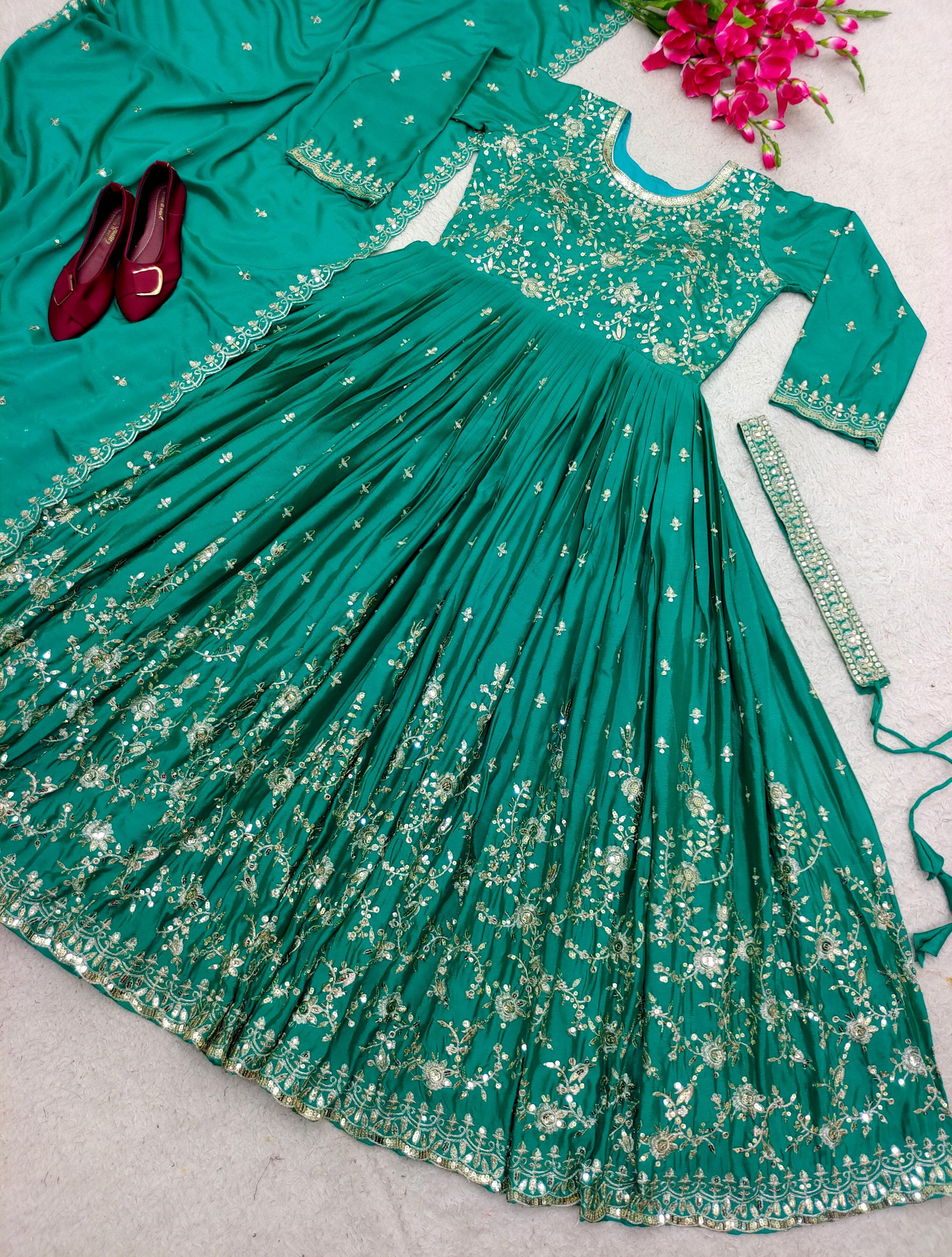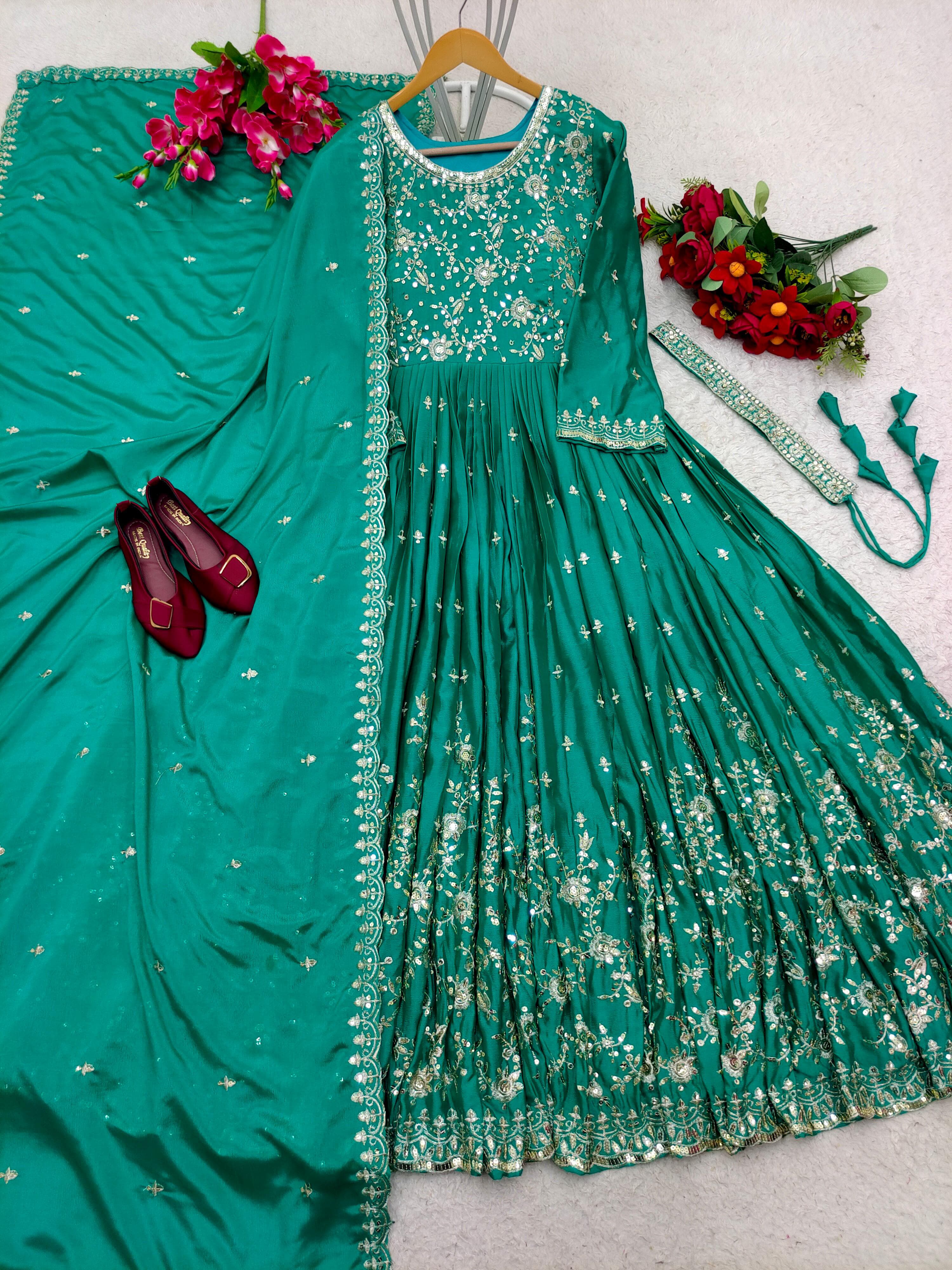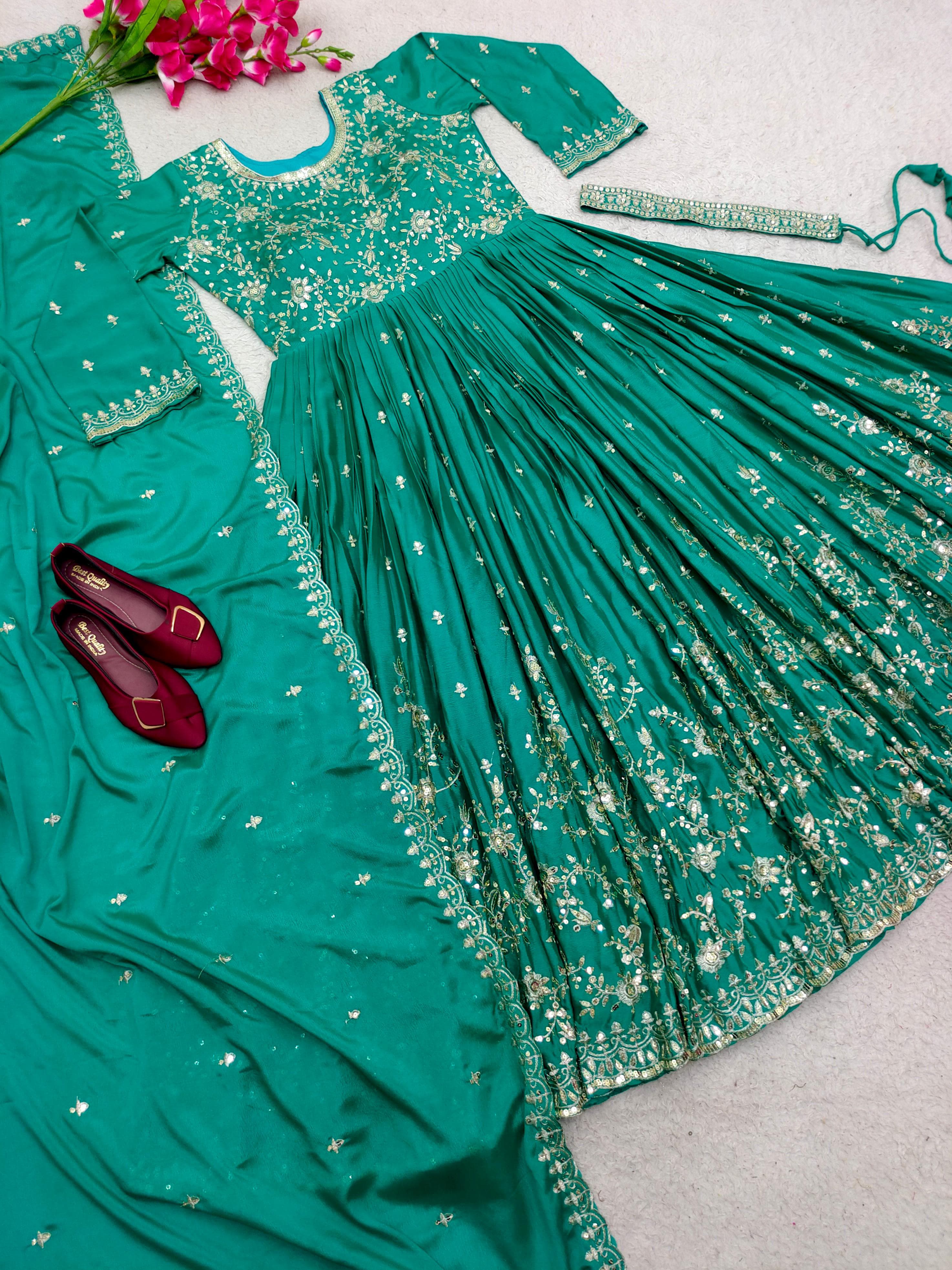 👉👗Gwon Fabric : Heavy Satin Silk With Heavy 5mm sequence Emrodery Work With Full-Sleeve With (Atteched Paid With Kamer Belt)