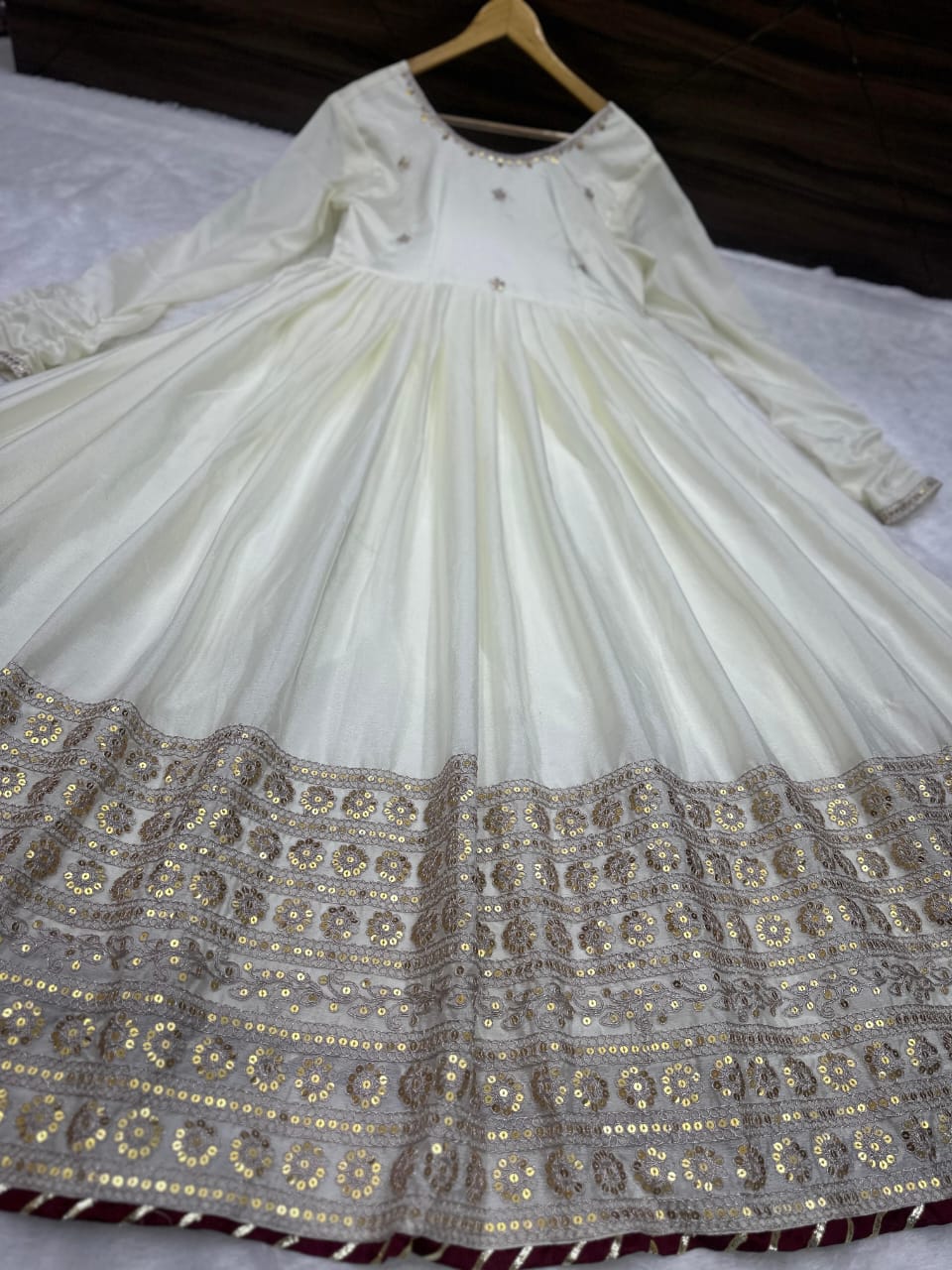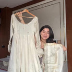 Lavish White Silk Anarkali Gown