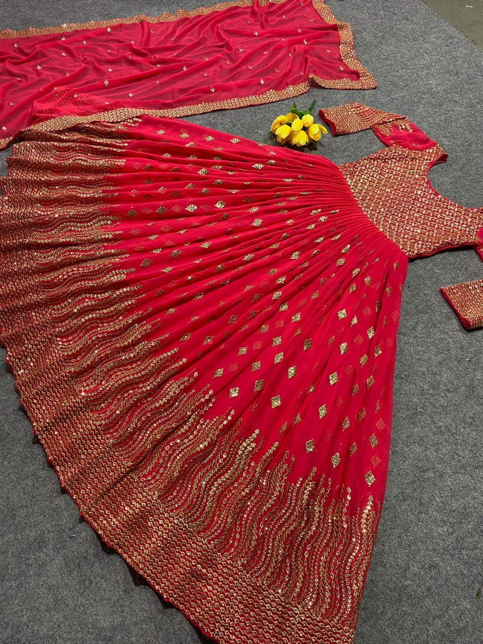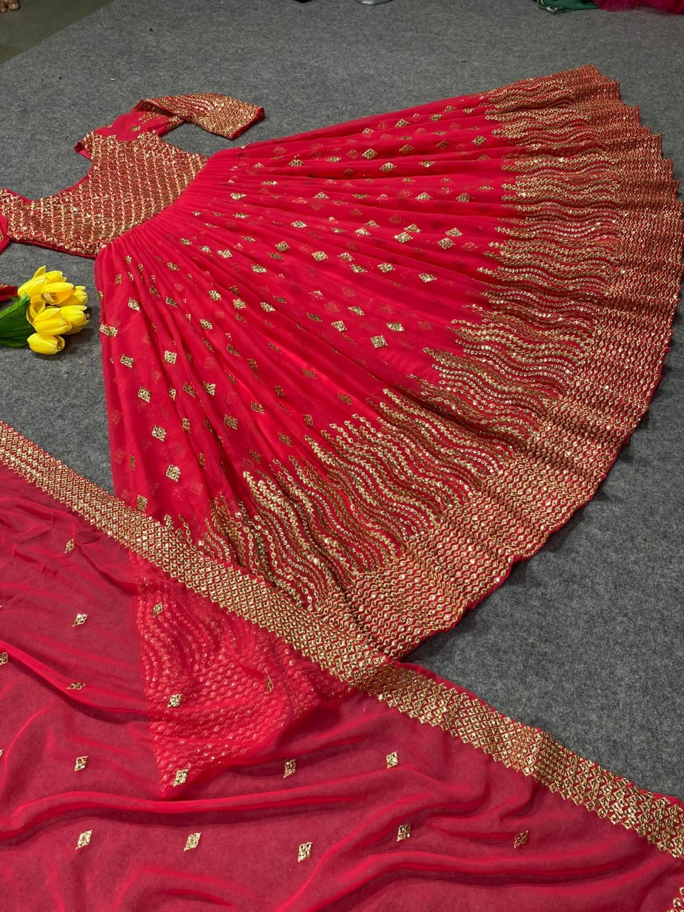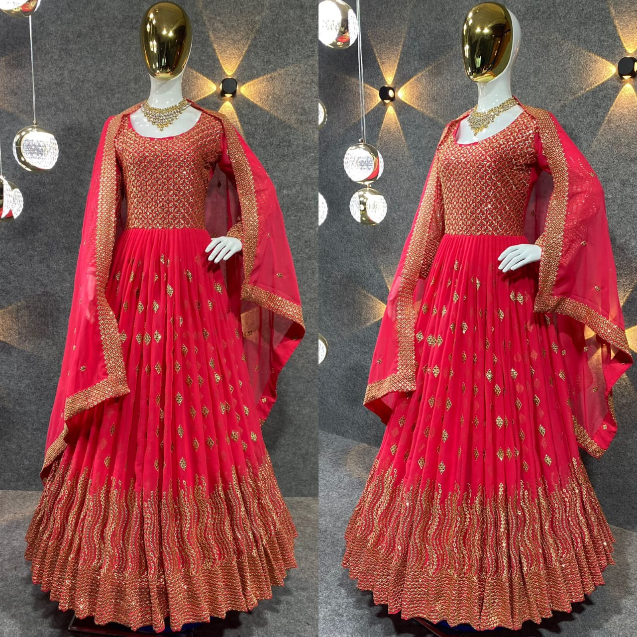 👗 GOWN FABRIC : FOX GEORGETTE WITH EMBROIDERY 5MM SEQUENCE WORK WITH FULL SLEEVES