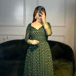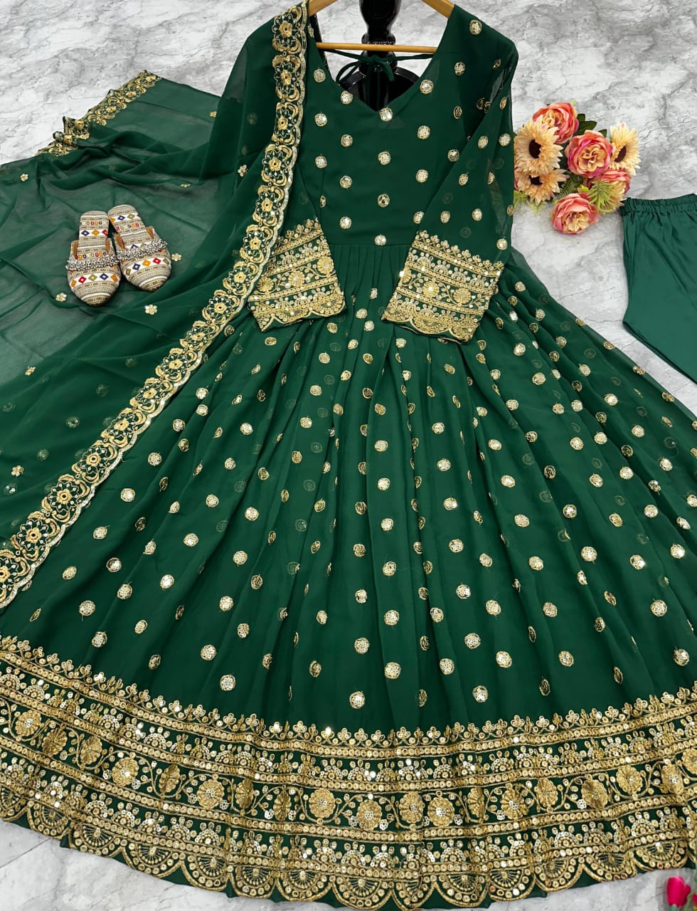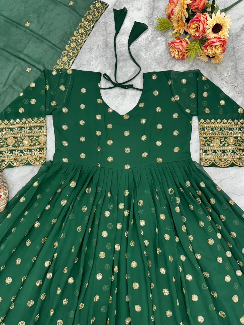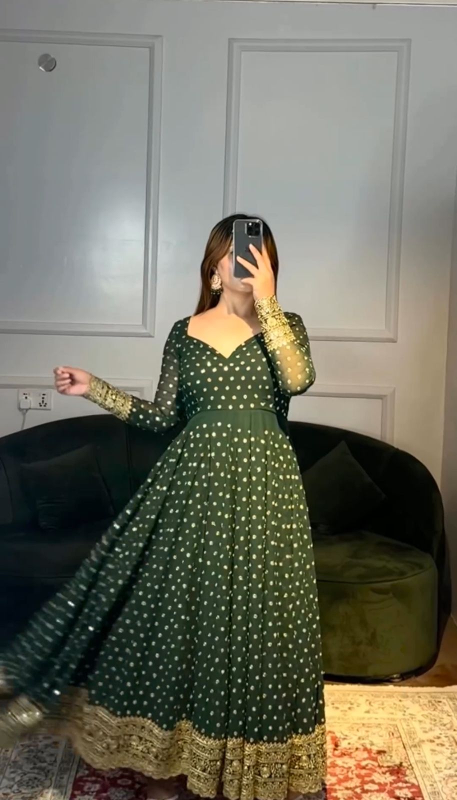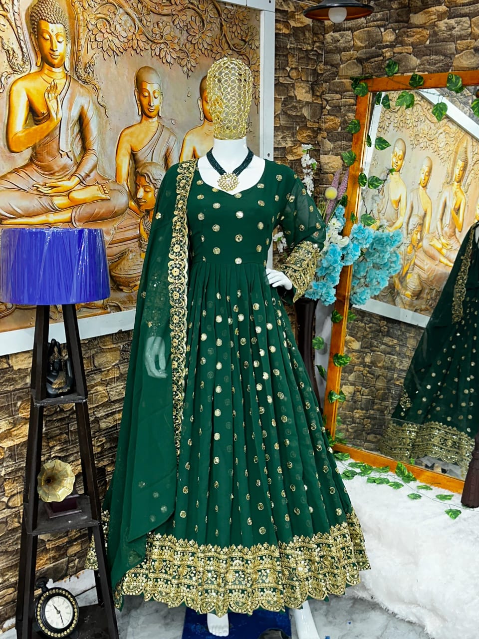 👗 GOWN FABRIC :HAVY FOUX GOARGATE WITH HAVY EMBROIDERY 5MM SIQVAS WORK AND FULL SLIVE