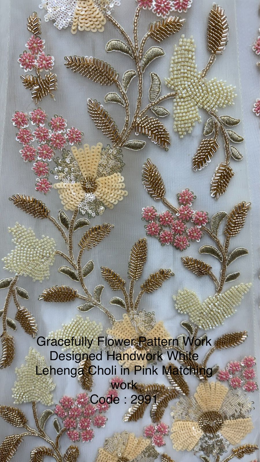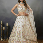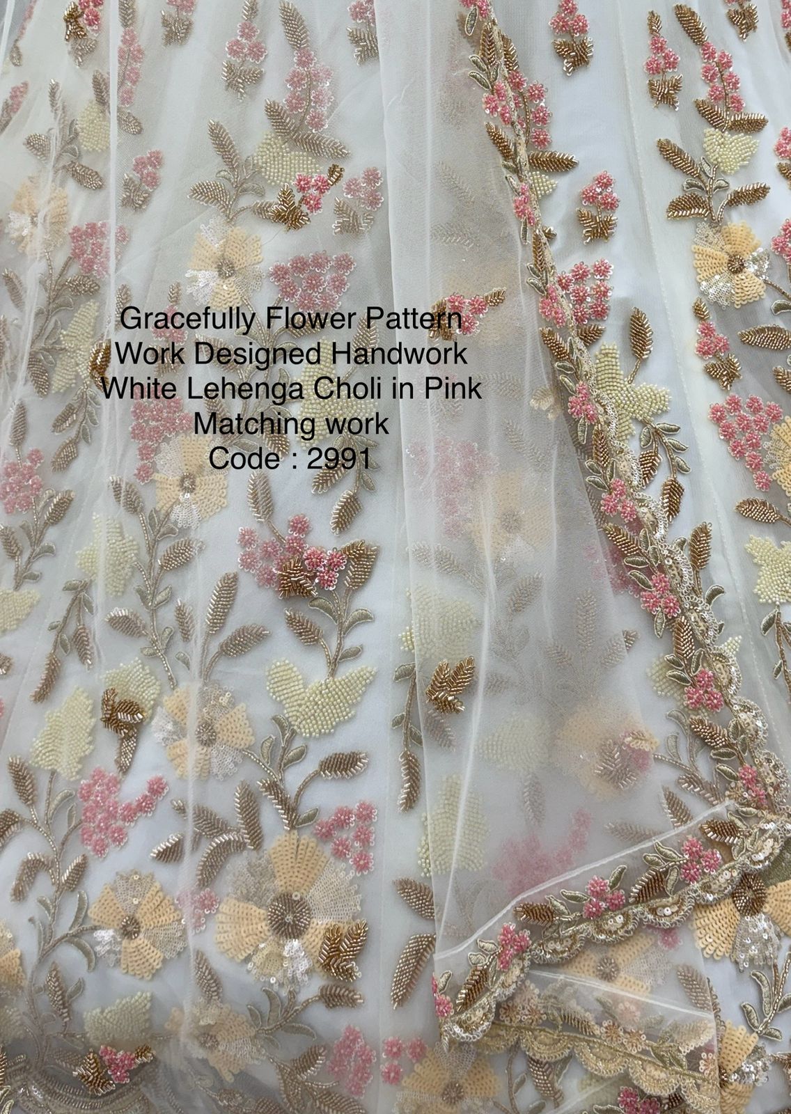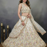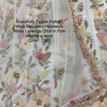 Gracefully Flower Pattern Work Designed Handwork White Lehenga Choli in Pink Matching work