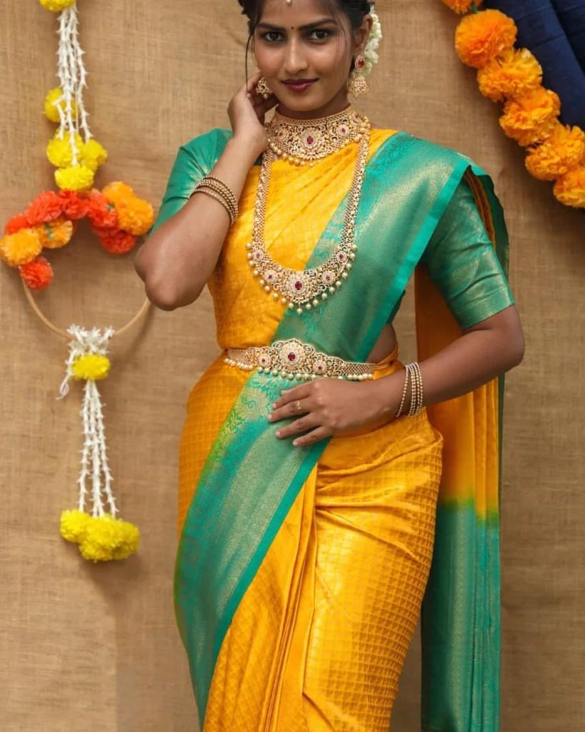 Kubera Pattu Silk Saree Rich Pallu & Brocade Kubera Silk Blouse With Same As Picture Heavy Zaller Attached.