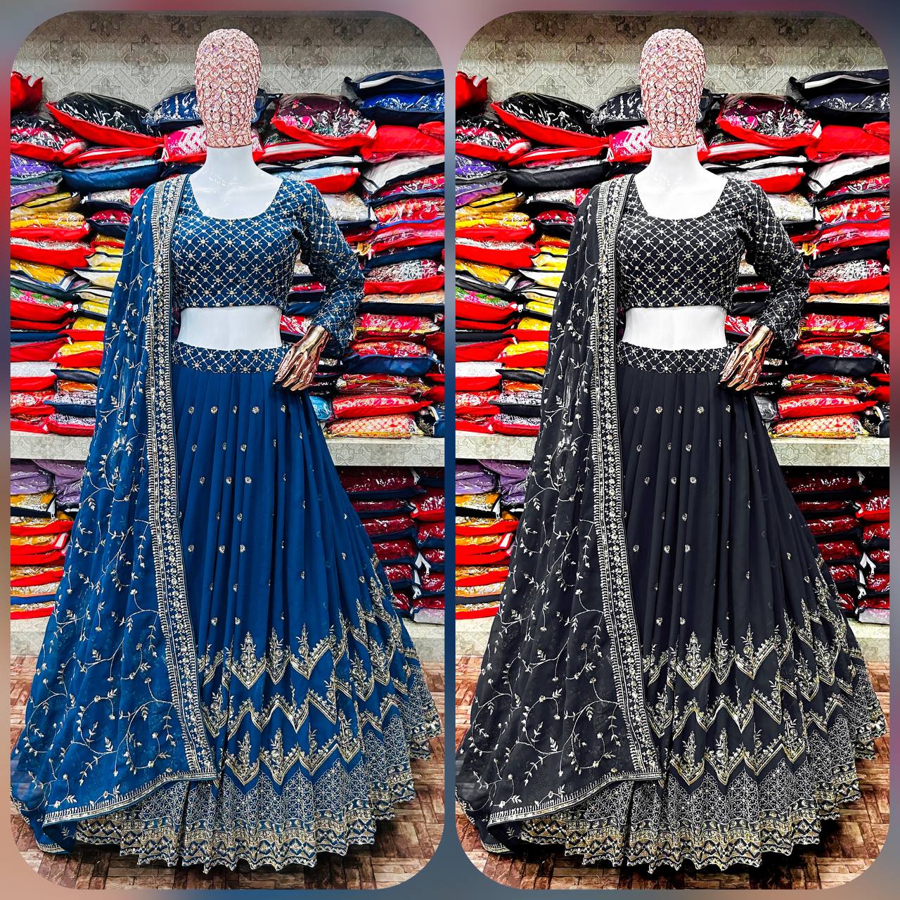 FABRIC : Faux Gorgette Silk fabric With Micro silk inner with 3 Mtr Flair Come With Semi Stiched type Lehengha with Canvas Patta 😍