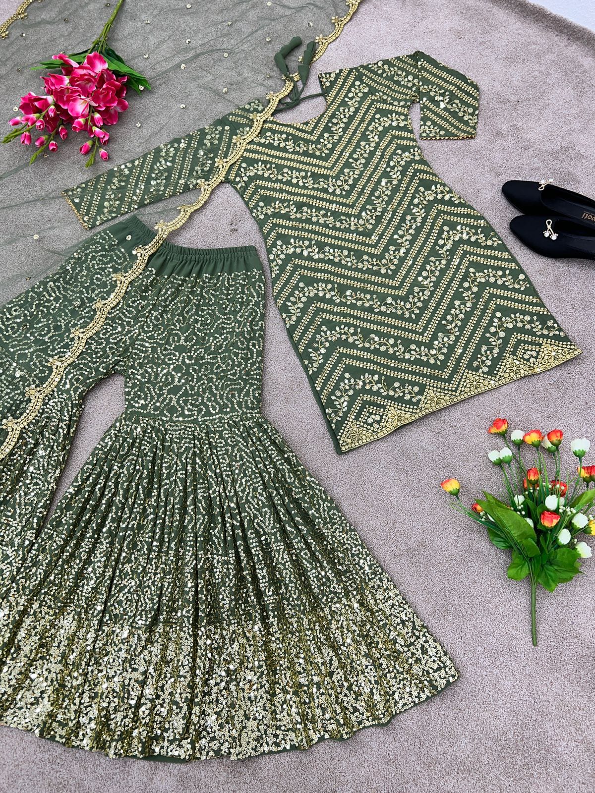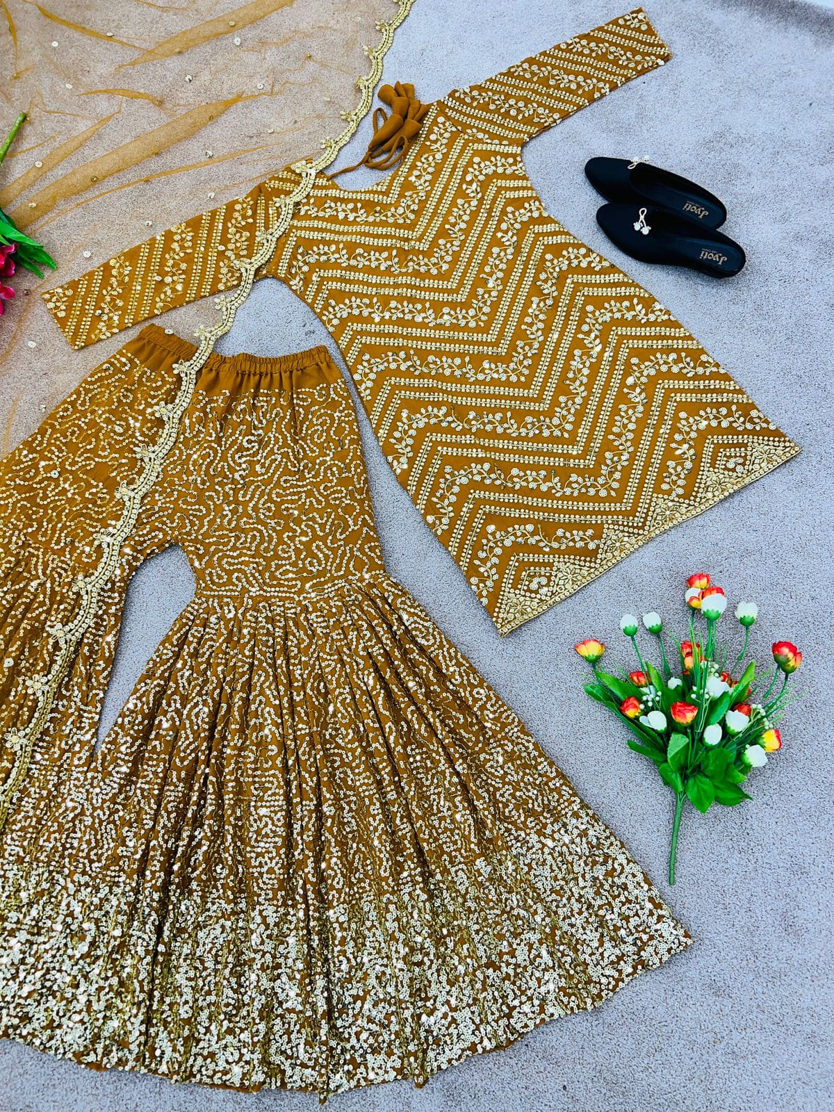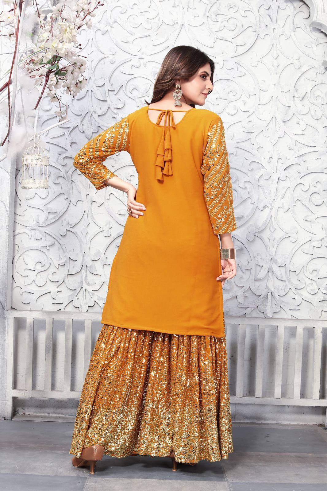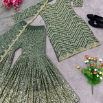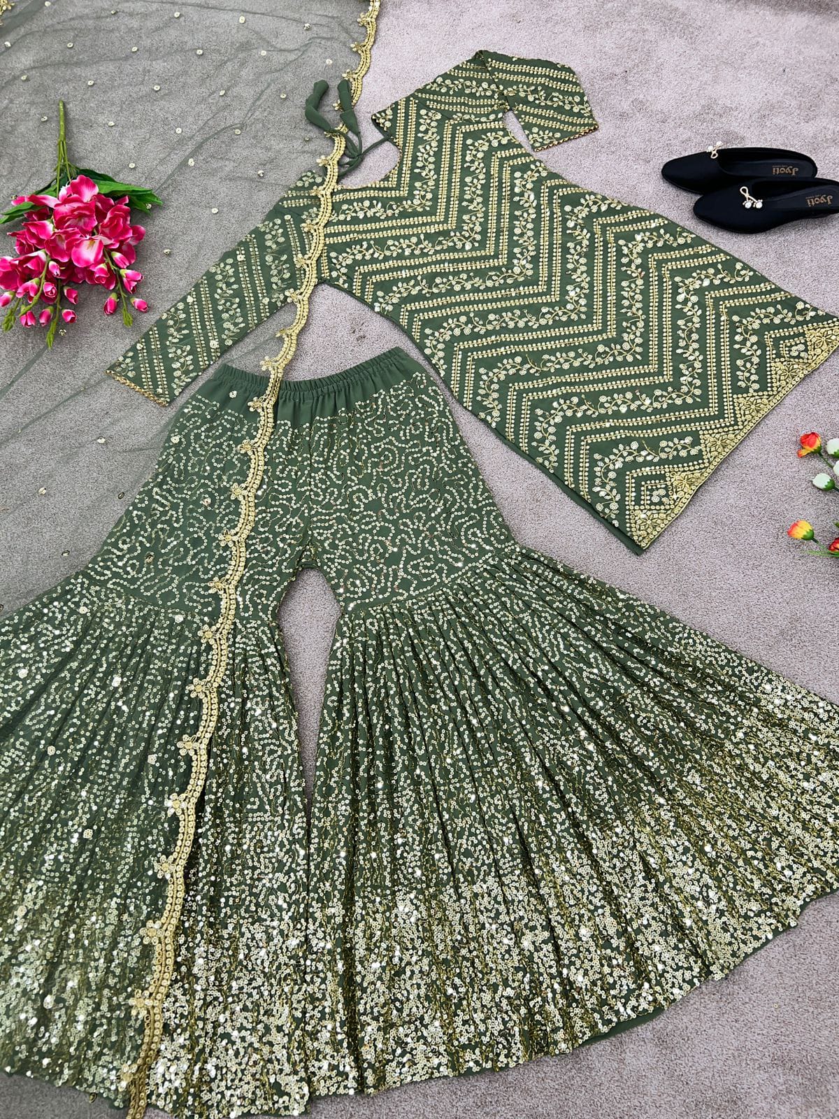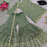 Plazzo Fabrics :Heavy Faux Georgette With 5mm Embroidery Sequence Work With Fully Flair