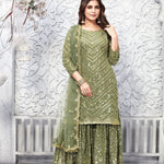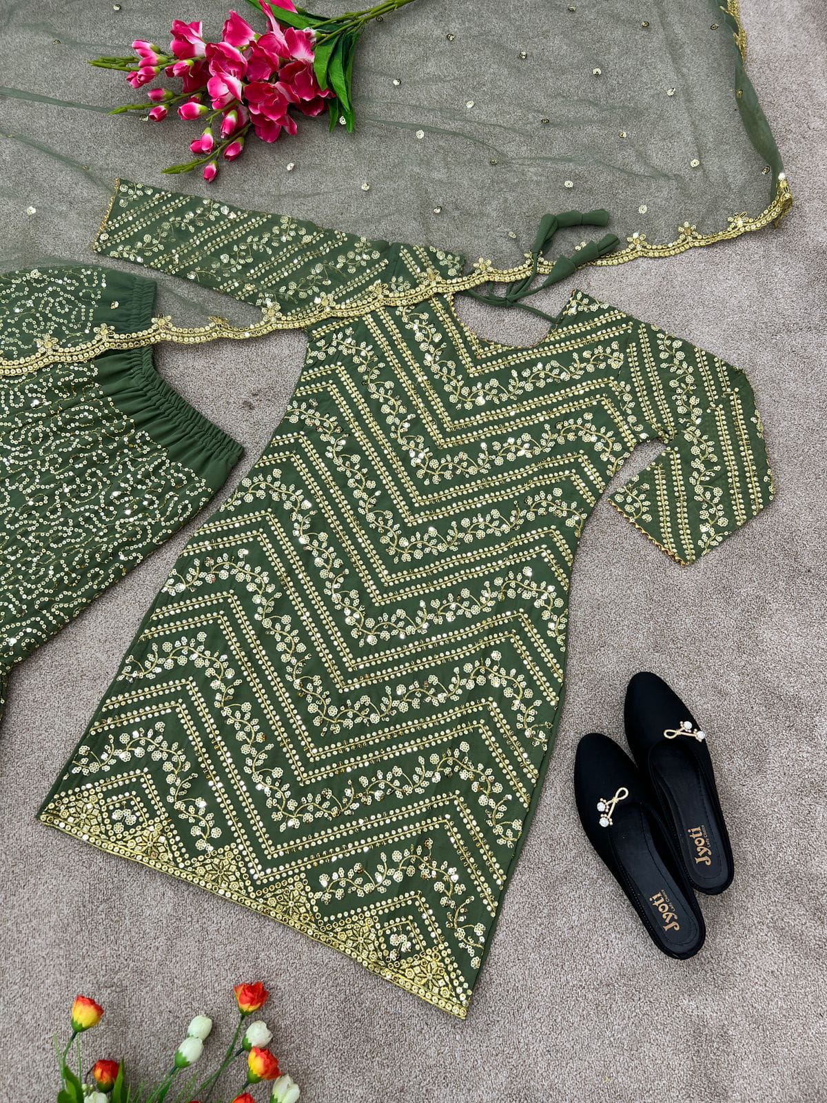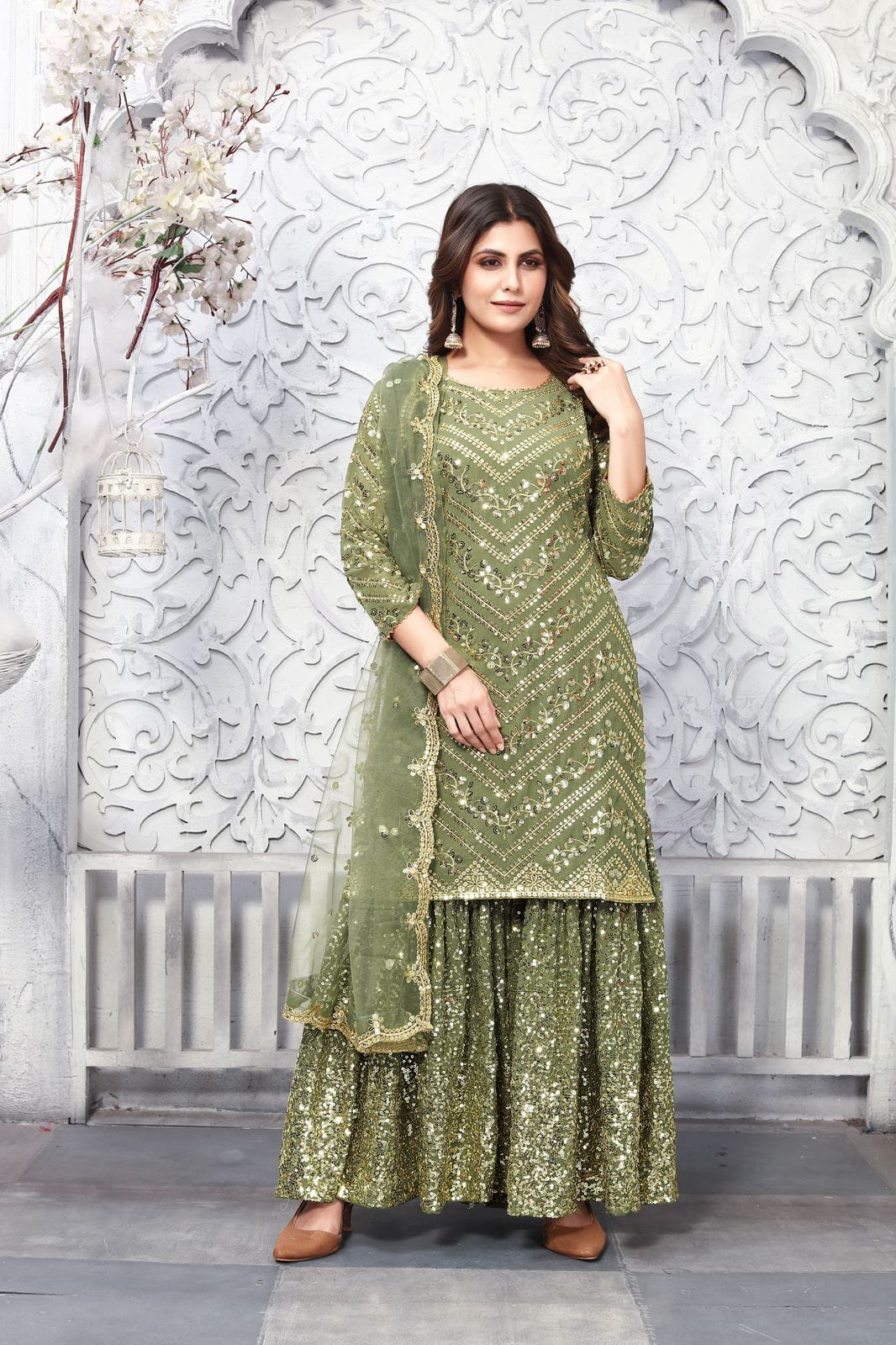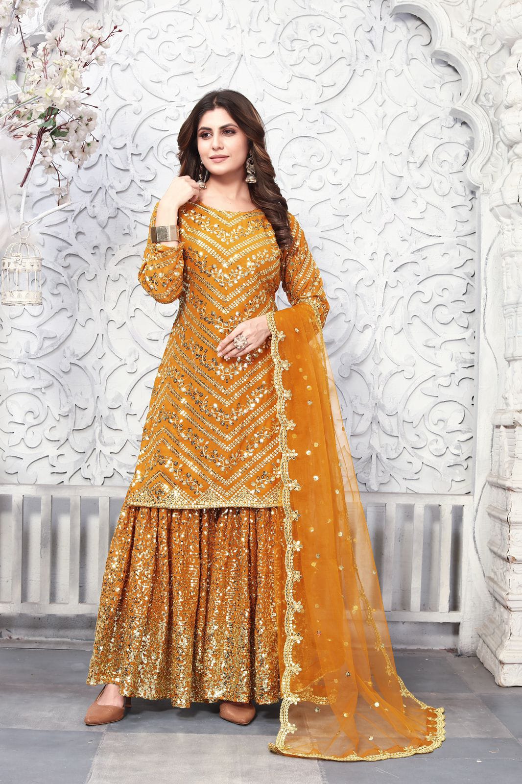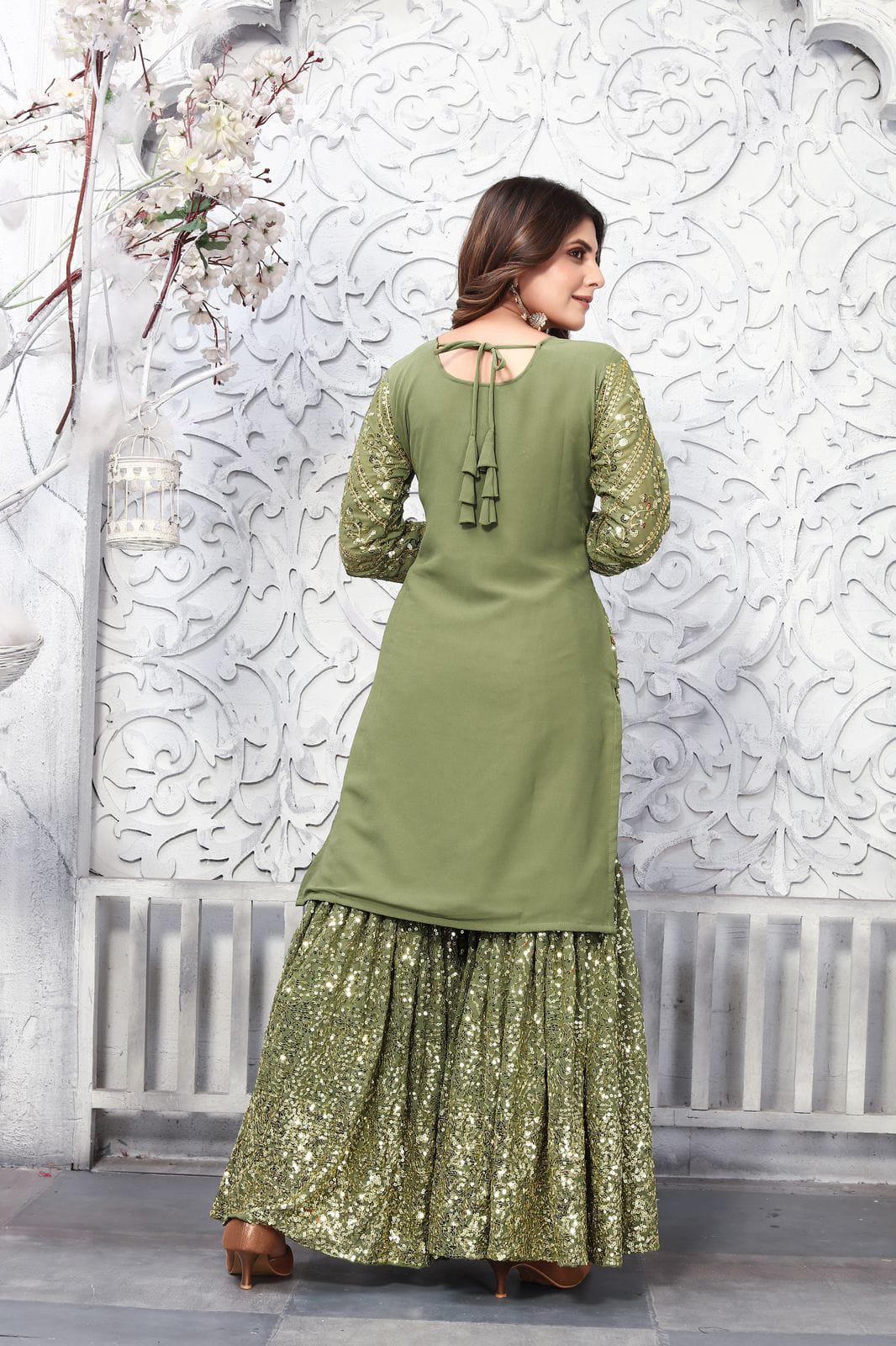 Plazzo Fabrics :Heavy Faux Georgette With 5mm Embroidery Sequence Work With Fully Flair