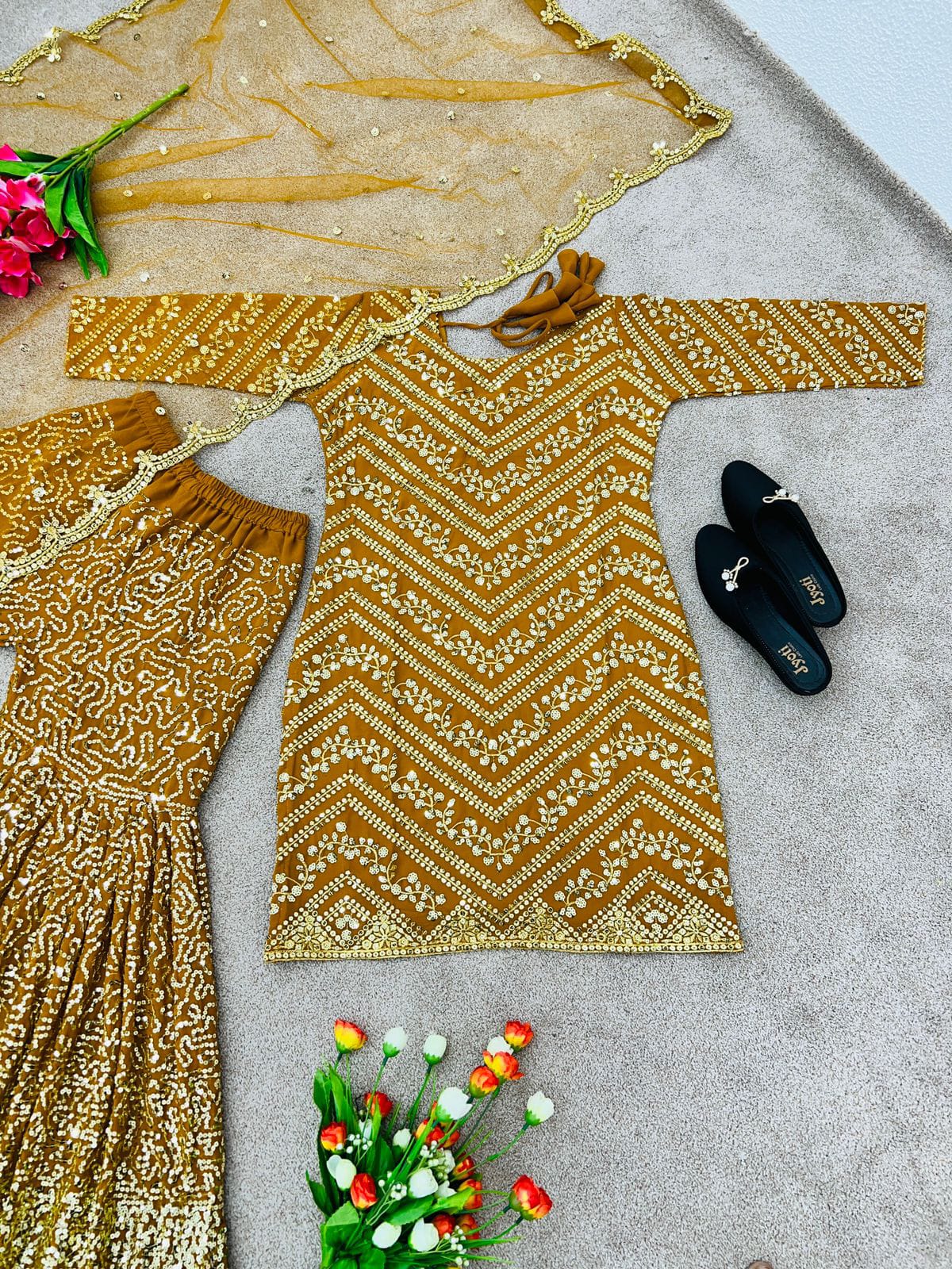 *Top Fabric * :Heavy Faux Georgette With Heavy 5mm Embroidery Sequence Work With Full Sleeve and Latkan Dori