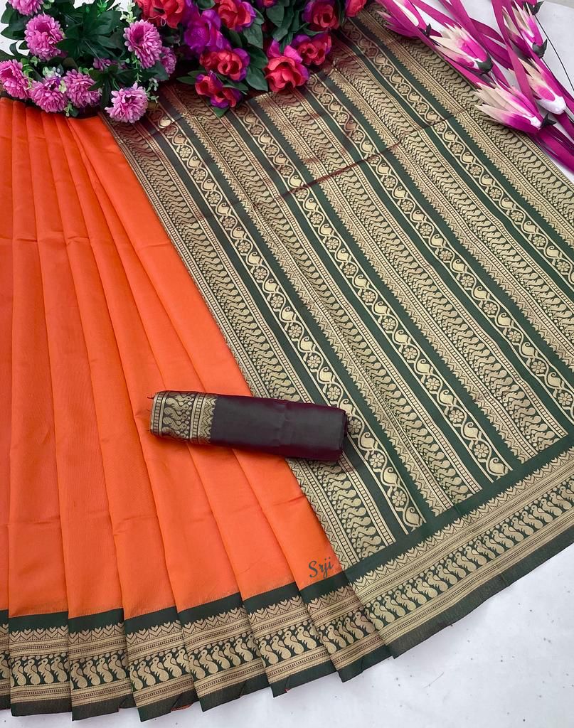 New Design soft silk Orange Saree