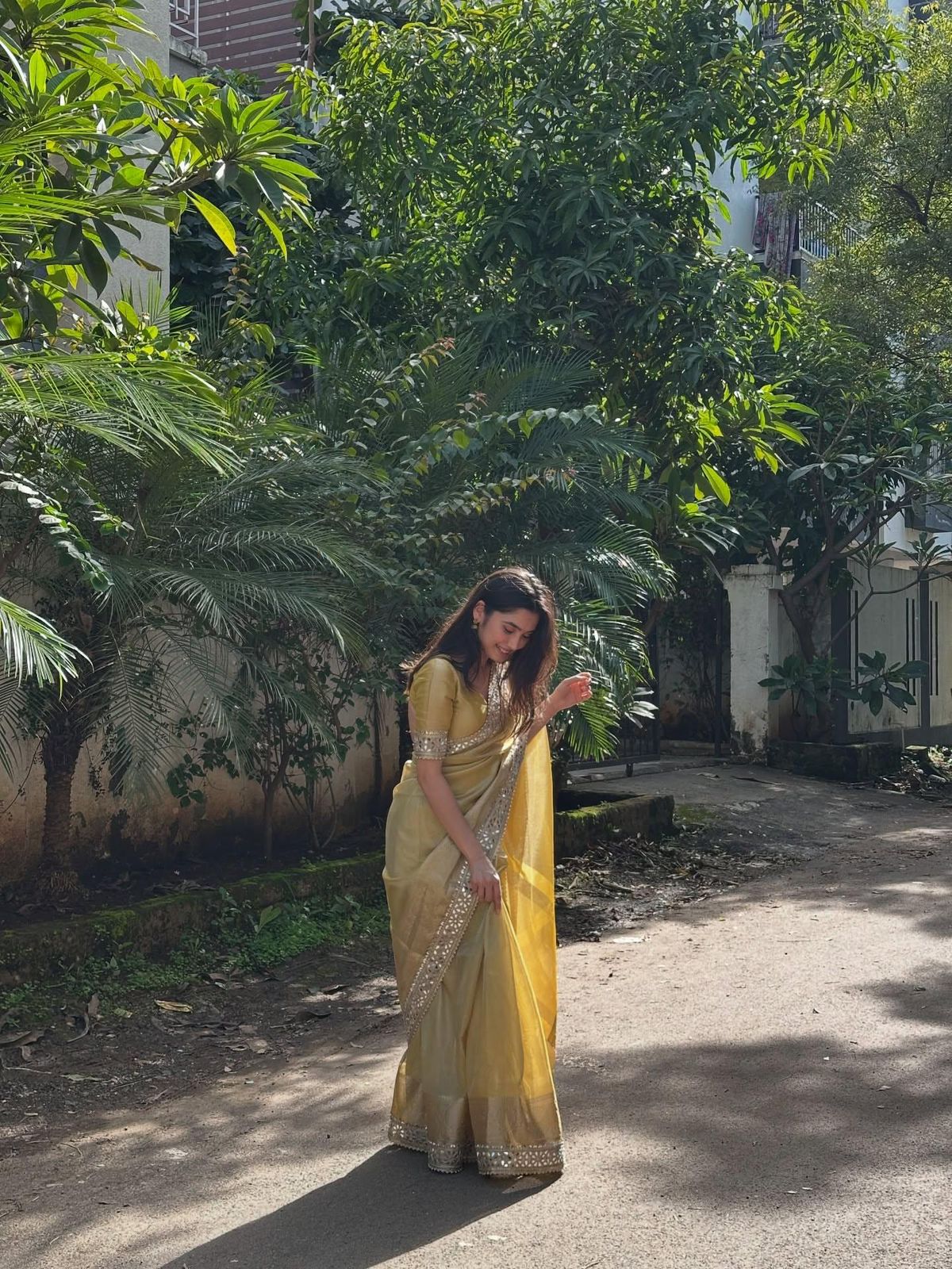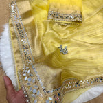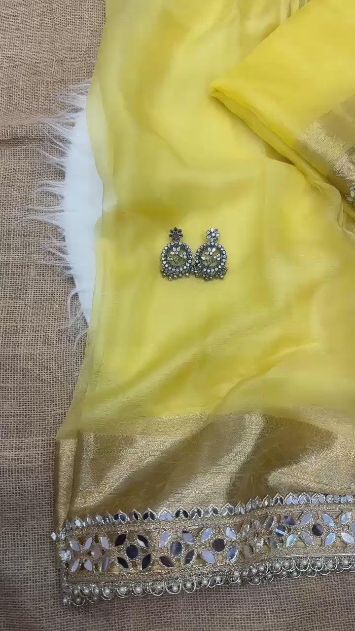 *New trending designer original mirror work lace border with soft organza weaving border saree with weaving rich pallu*