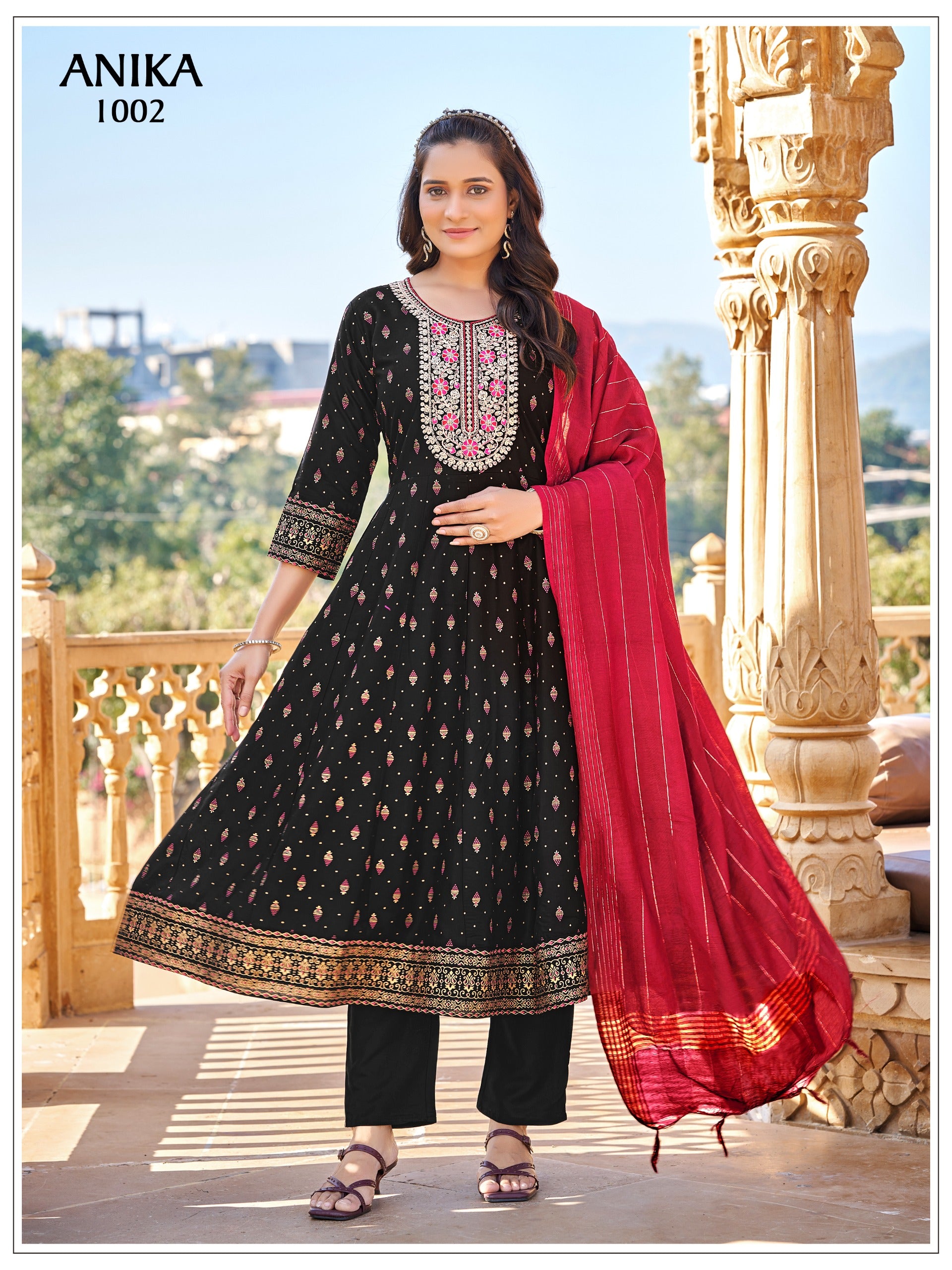 GOWN :- 14KG RAYON WITH HEAVY SEQUENCE EMBROIDERY QUARDING WORK WITH COLOR FOIL PRINT