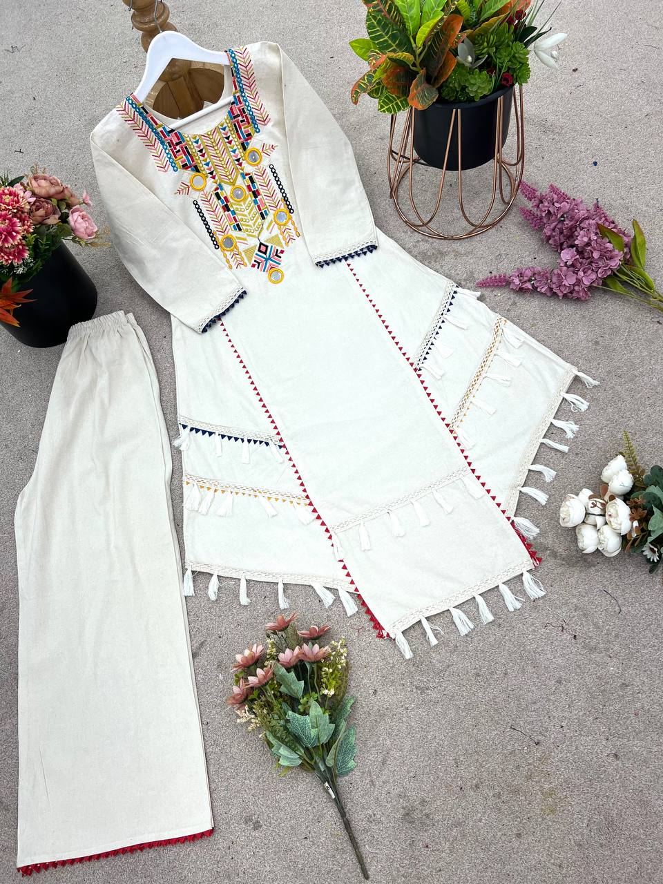 Pure Khadi Cottan With Embroidery Sequence Work With Real Mirror Work💐📌