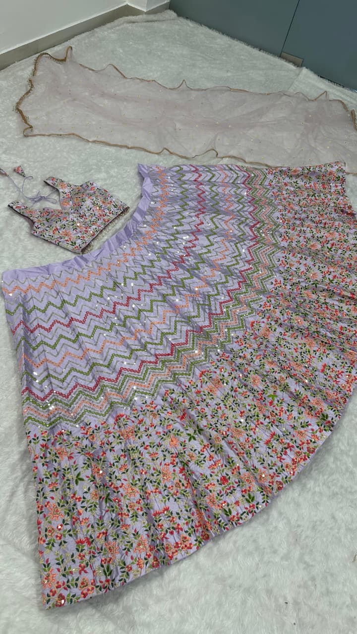 ⏭️ Heavy satin silk lehenga with sequins & thread work