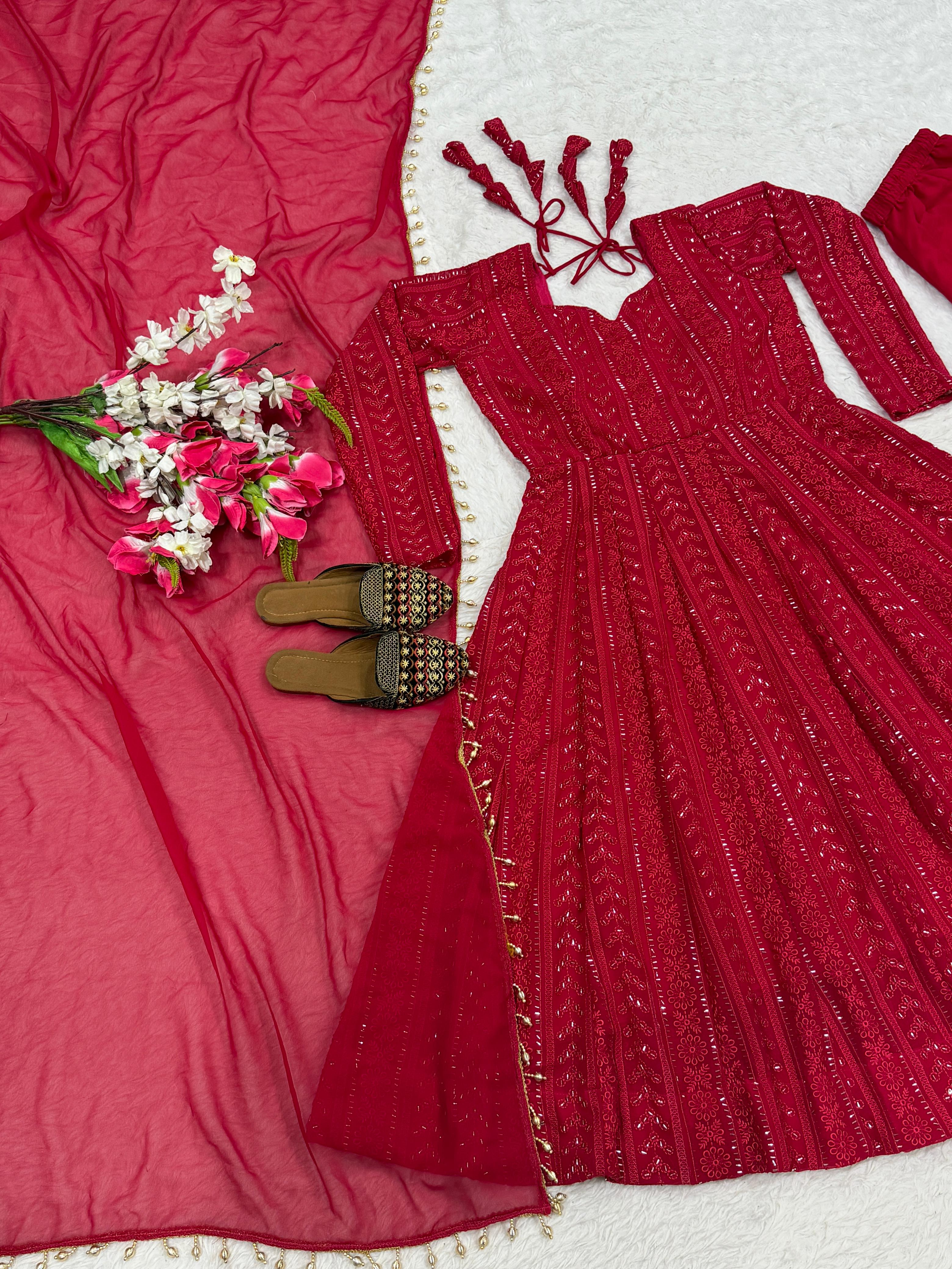 Stunning Cherry Red Emrboidered Suit