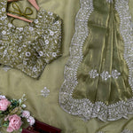 Fall in love with this stunning saree in an eye-catching shade, crafted with finesse and rich detailing. A perfect blend of grace and glam!