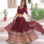 👉🏻 *Fabrics & Work :-*  Vichitra Silk with Sequins & Thread Embroidered work with Designer Lace Border